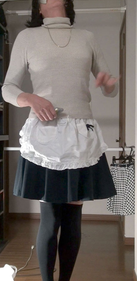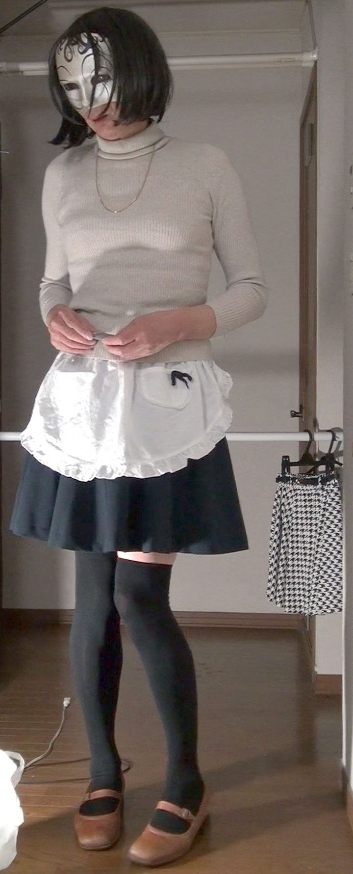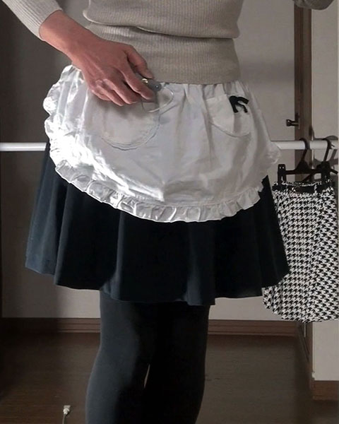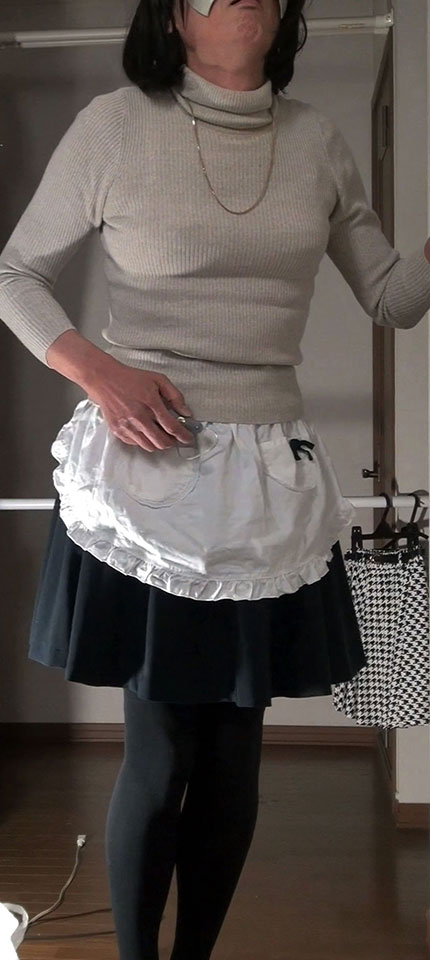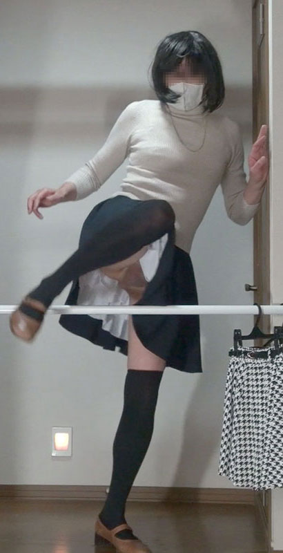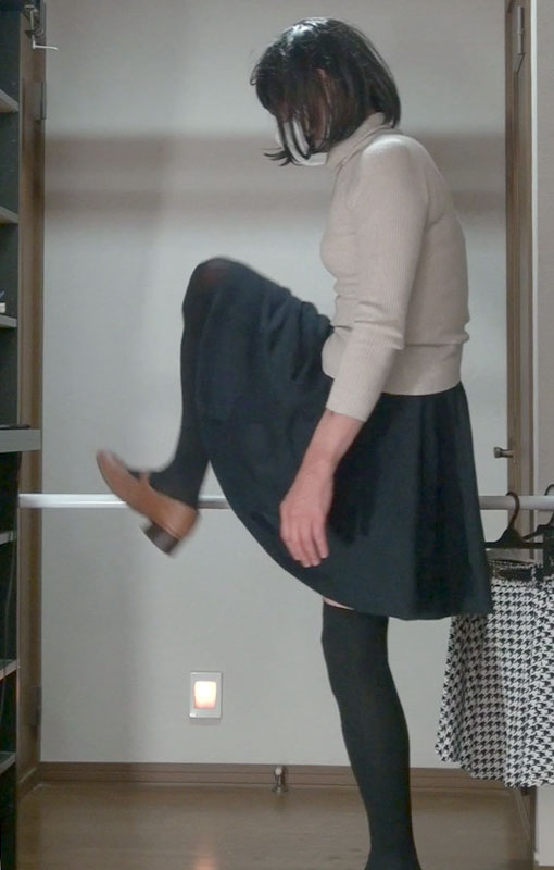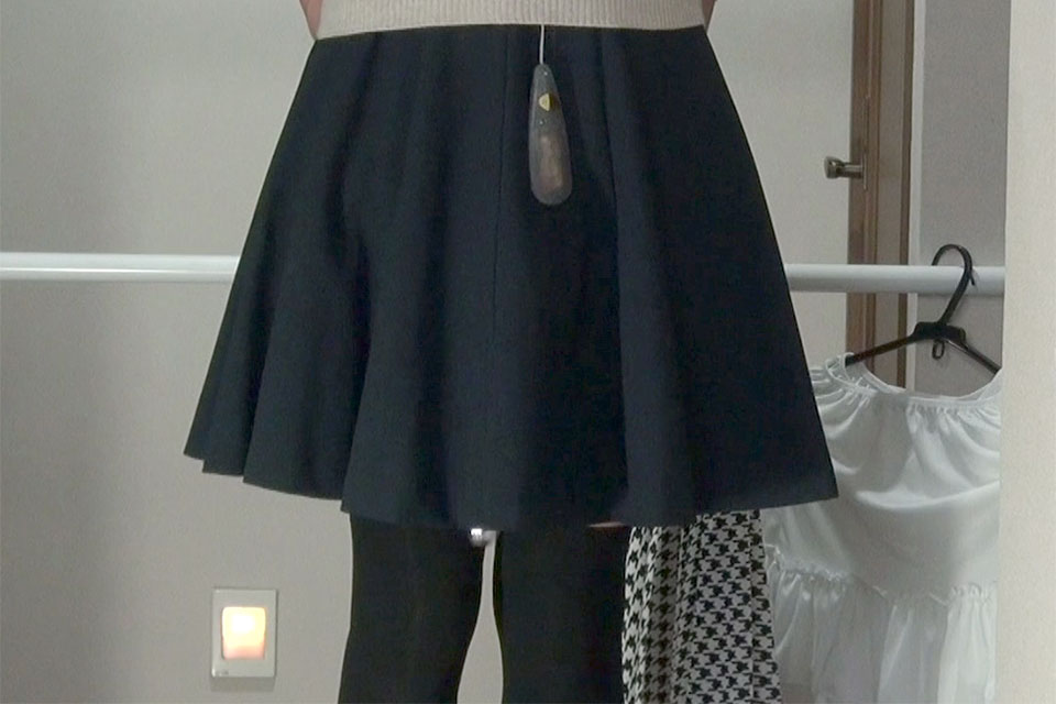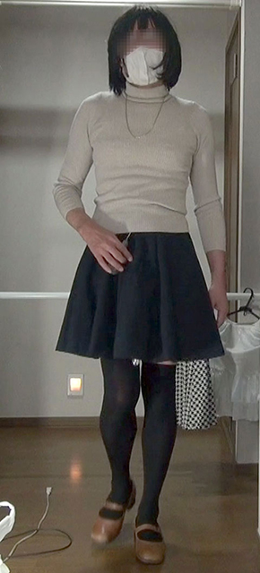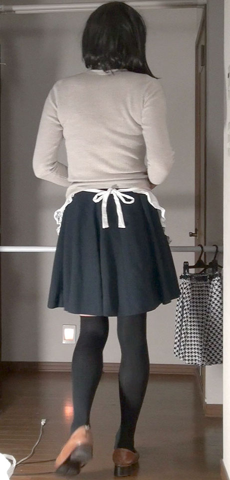 純子が穿きたいと思っている千鳥柄フレアーミニスカート...今夜はだめよ。スカート姿で別のスカートを持つ淫靡な気持ち!ああ...スカート生活!スカート大好き!