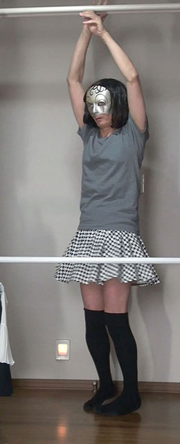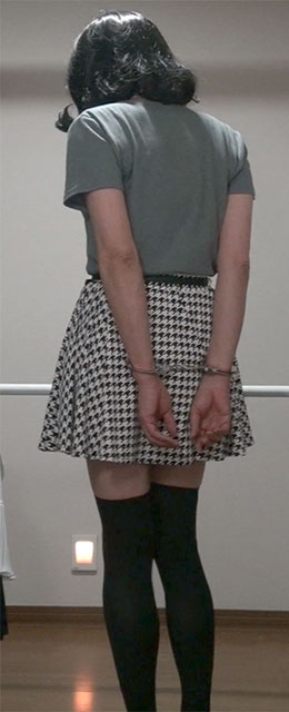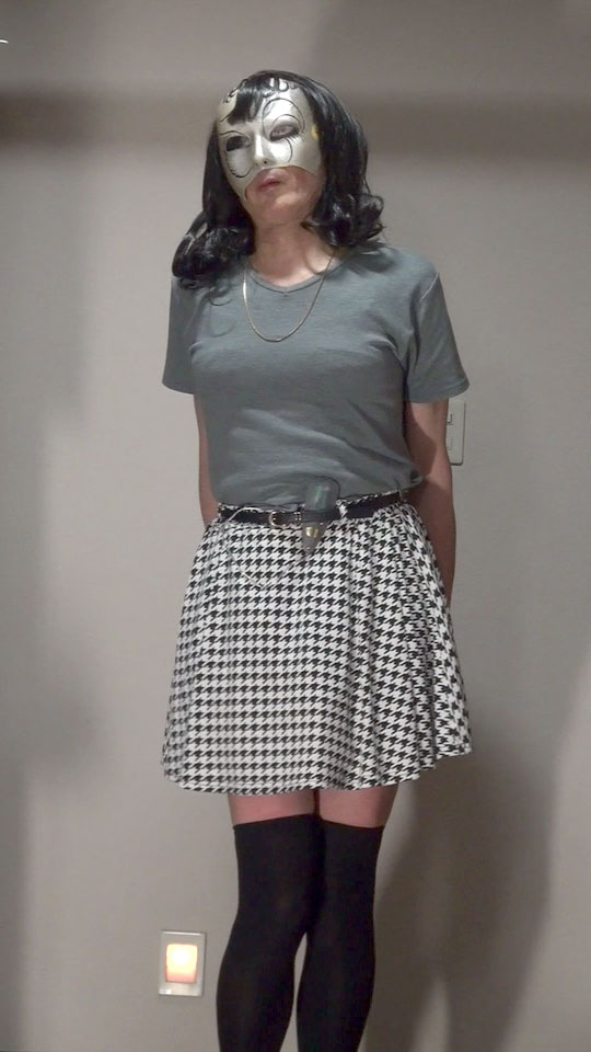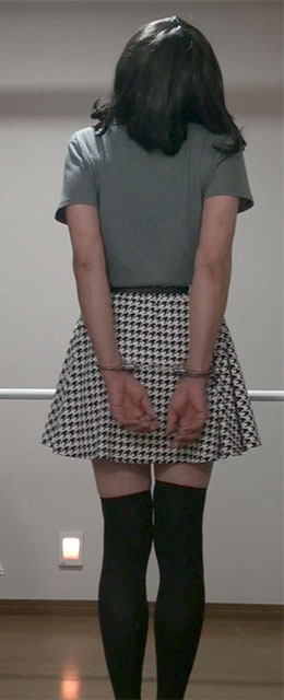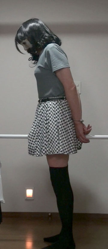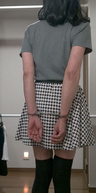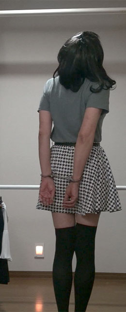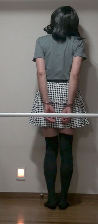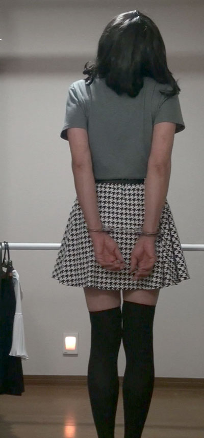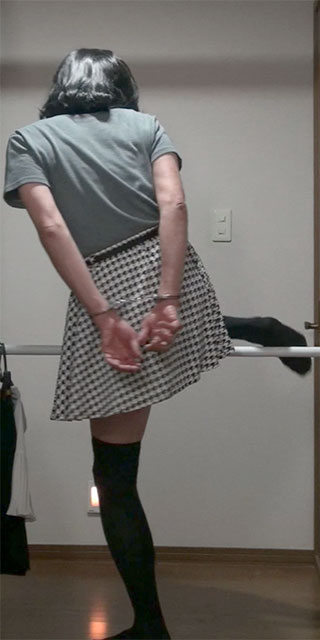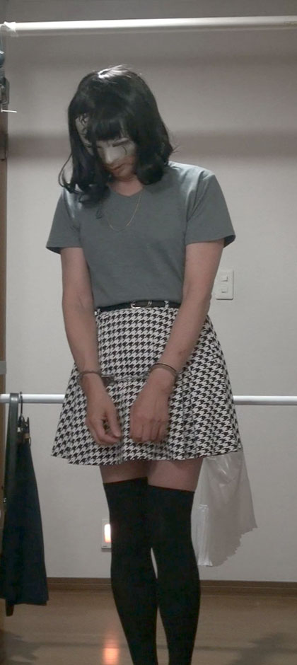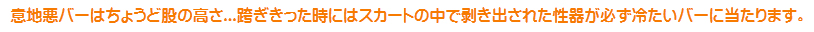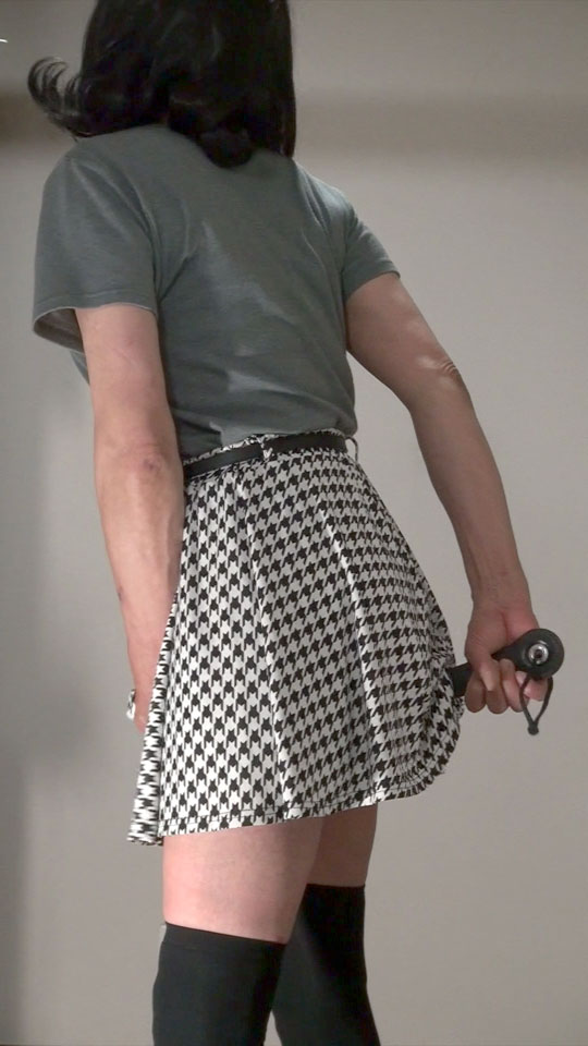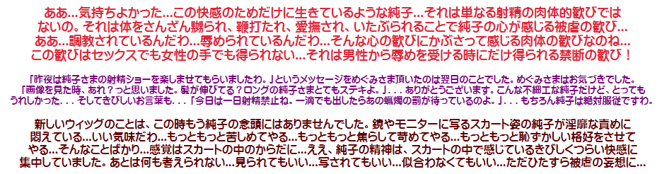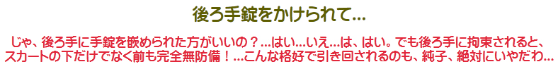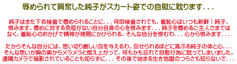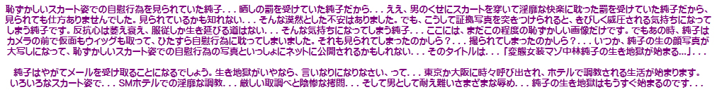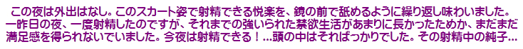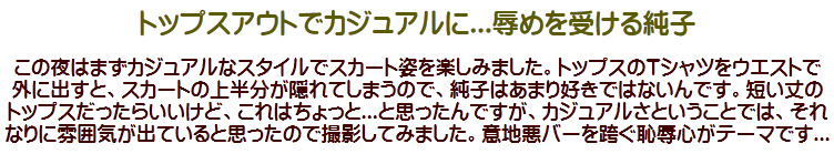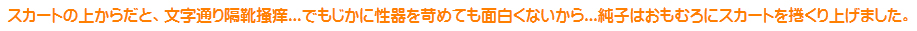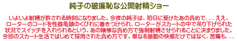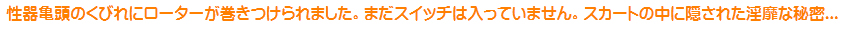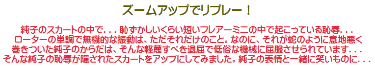 この時の純子はローターのコードを性器亀頭のくびれに巻きつけられ、ローターをスカートの中で吊っています...