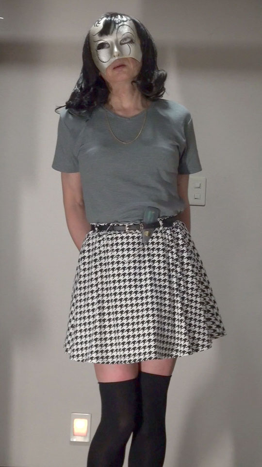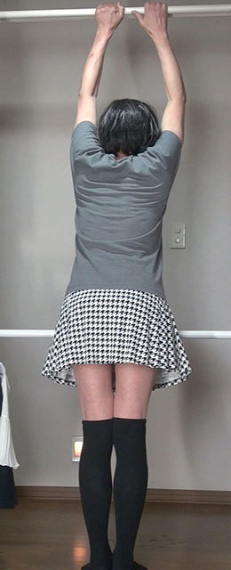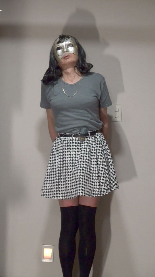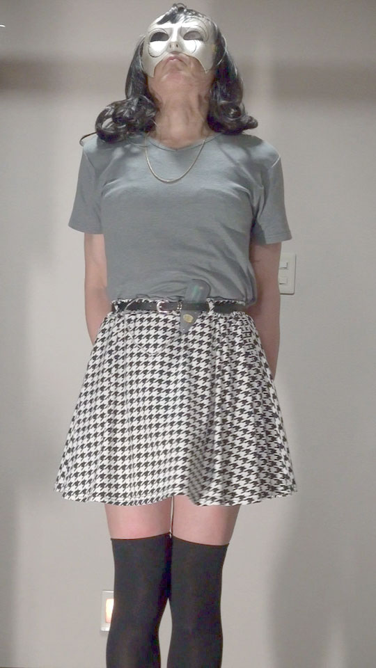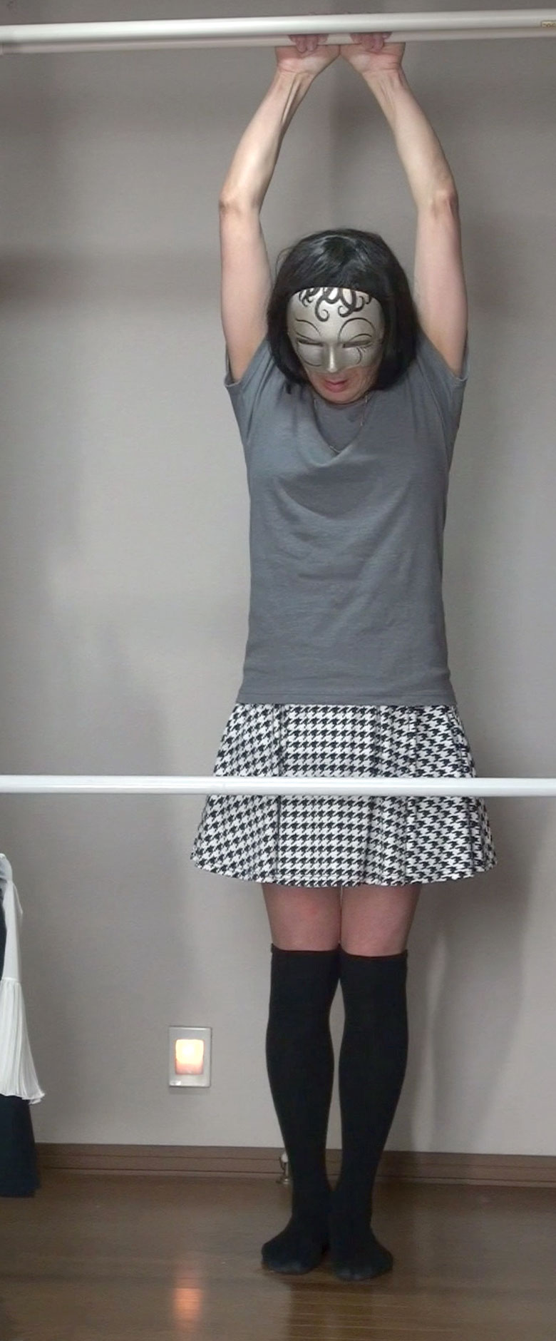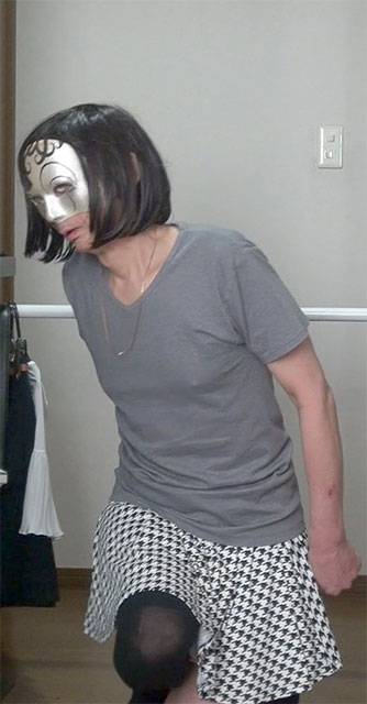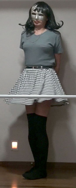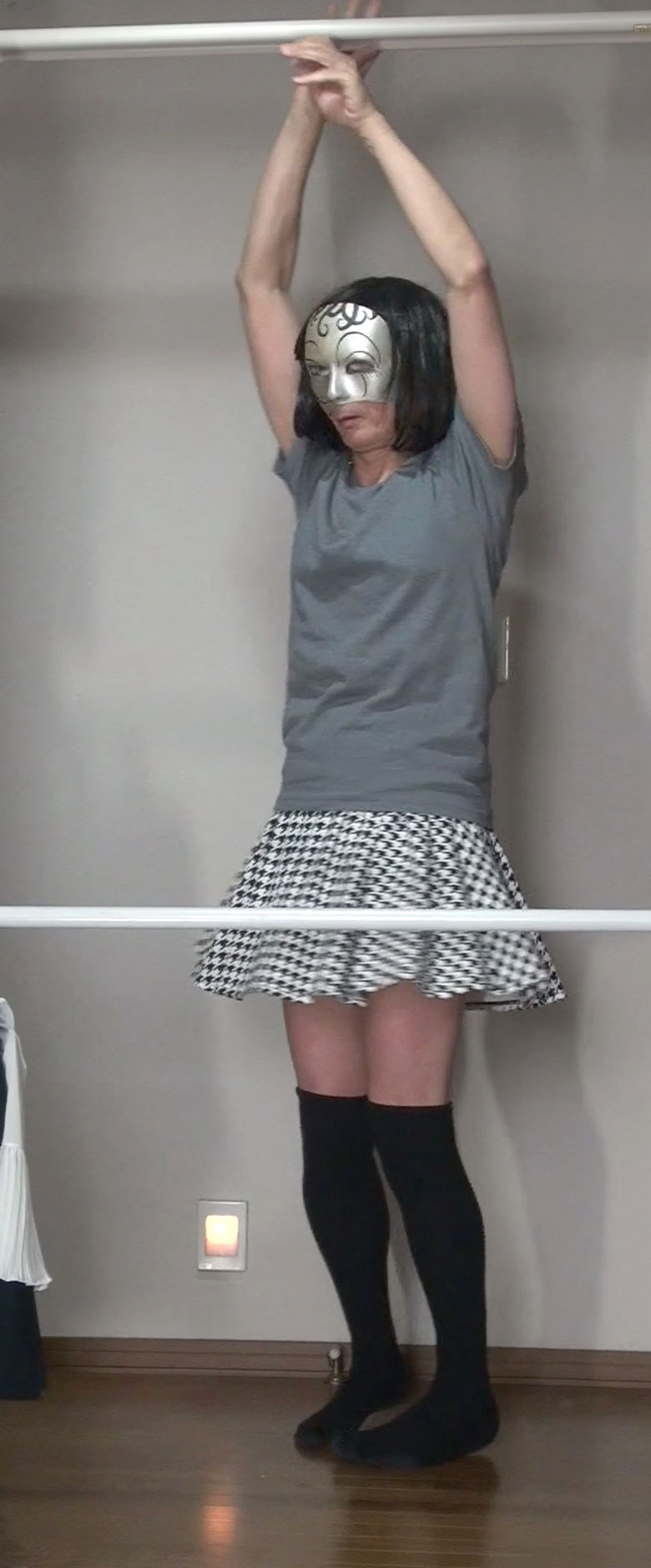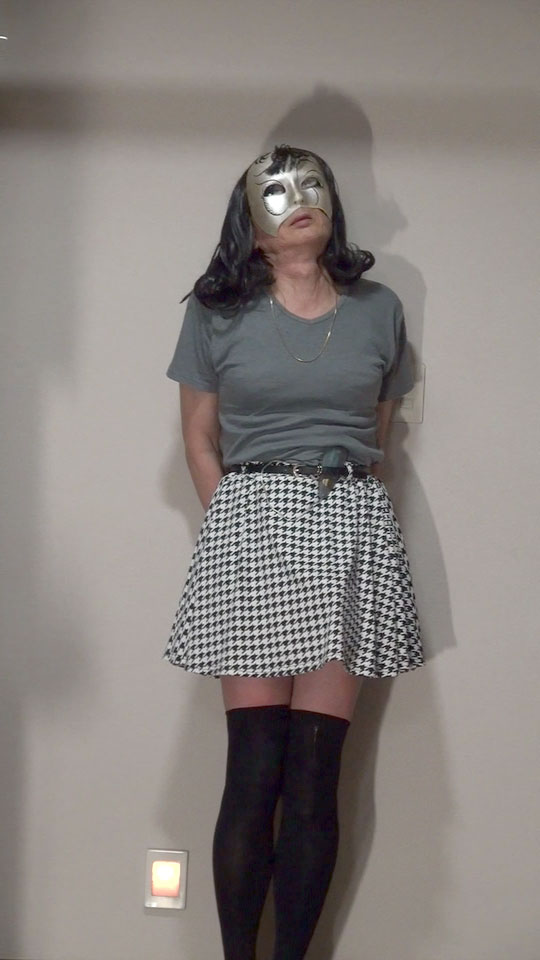 この時の純子はローターのコードを性器亀頭のくびれに巻きつけられ、ローターをスカートの中で吊っています...