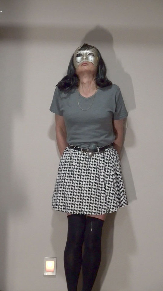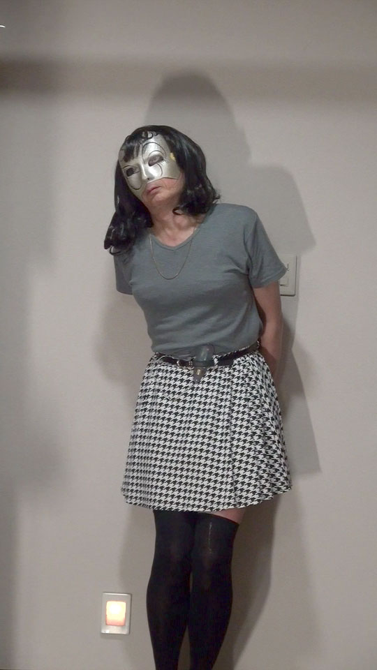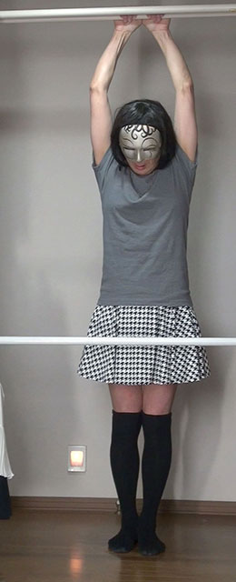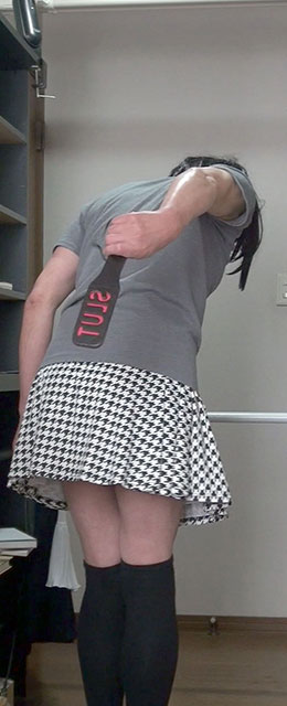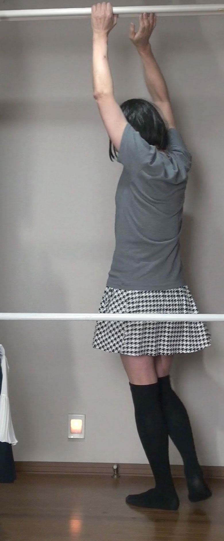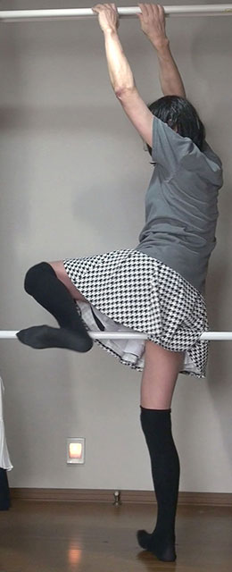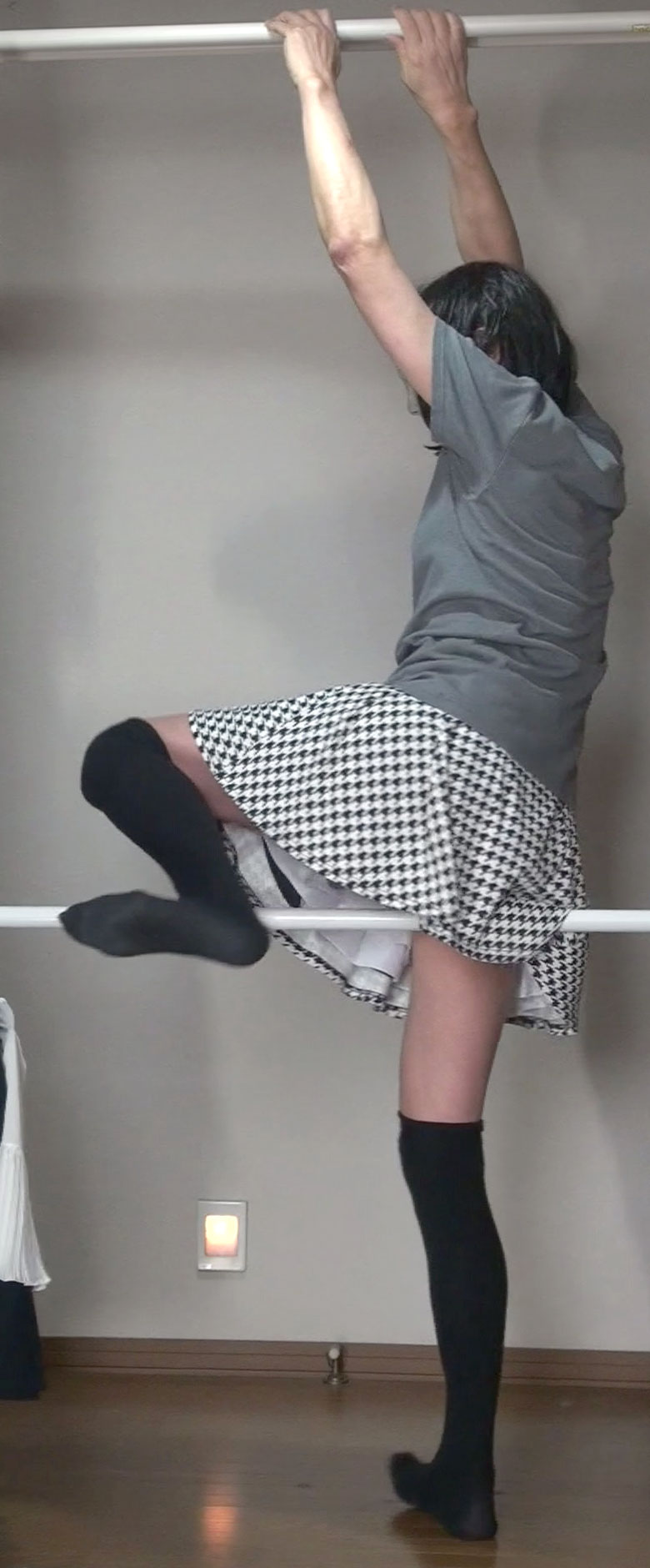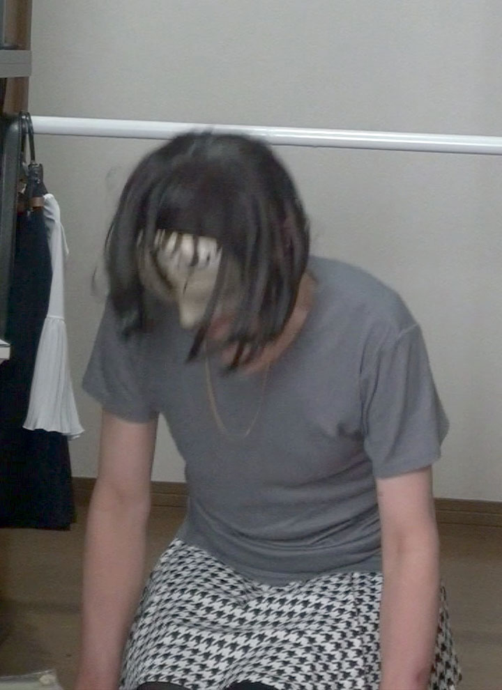 この時の純子はローターのコードを性器亀頭のくびれに巻きつけられ、ローターをスカートの中で吊っています...