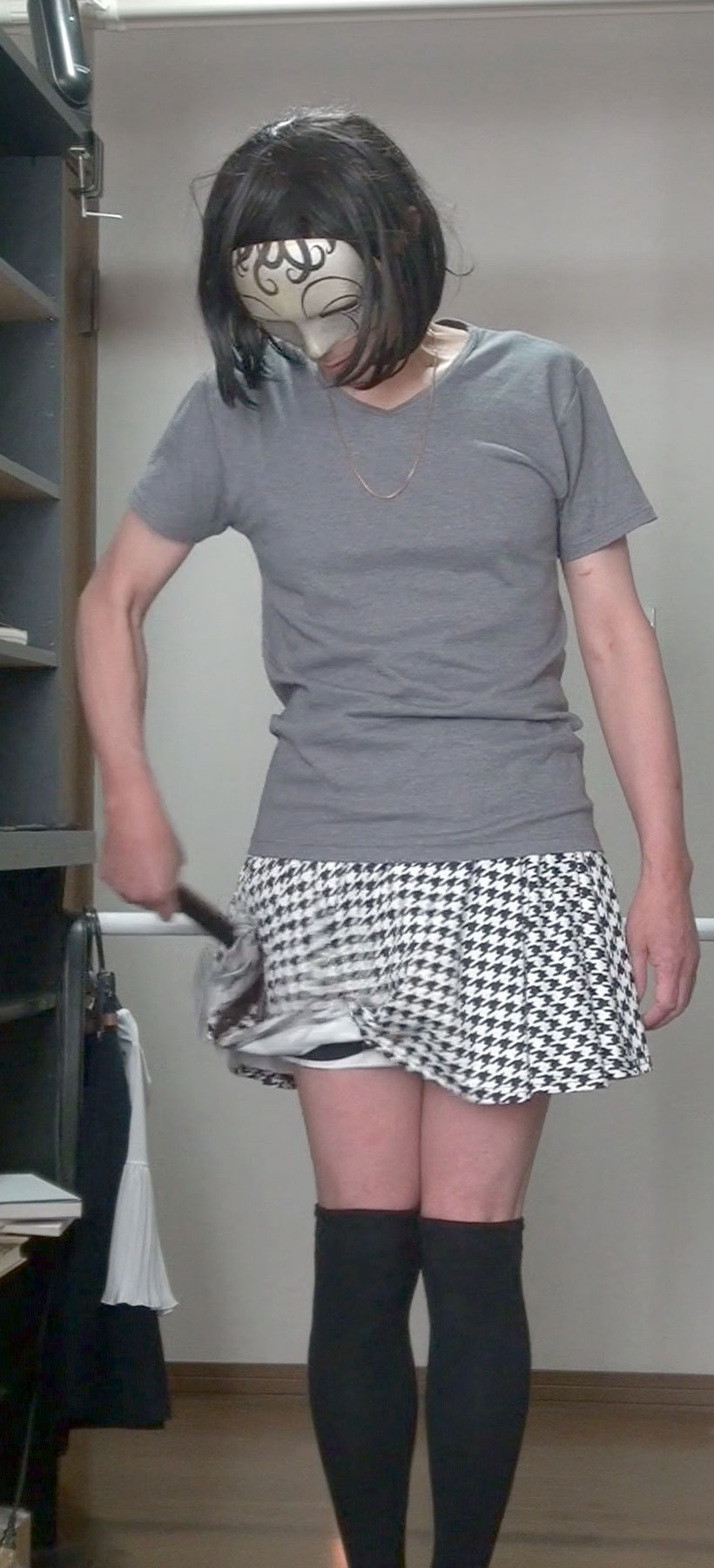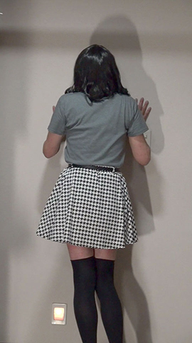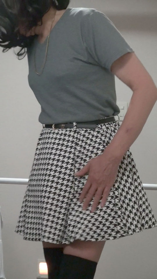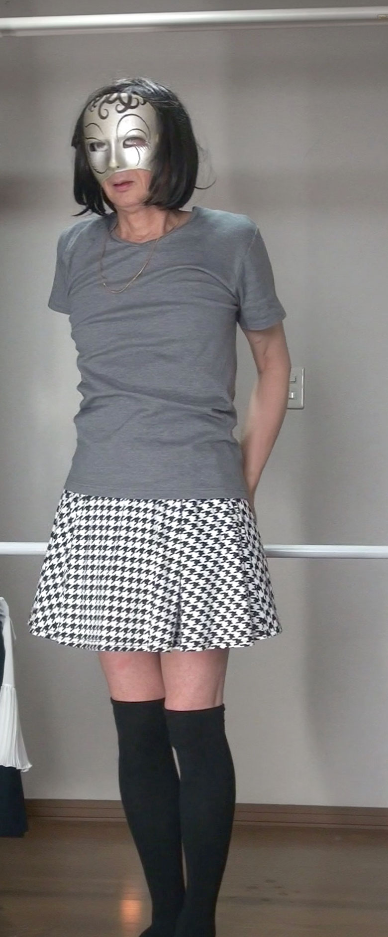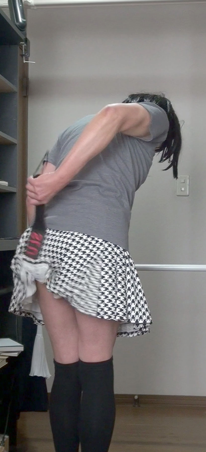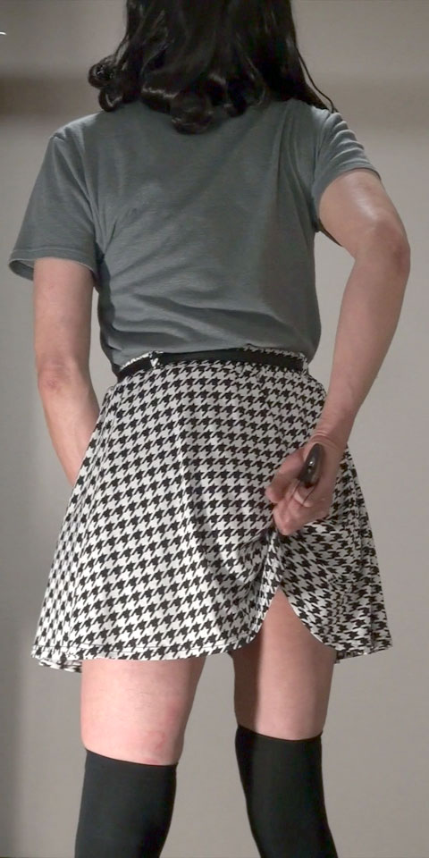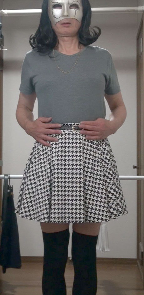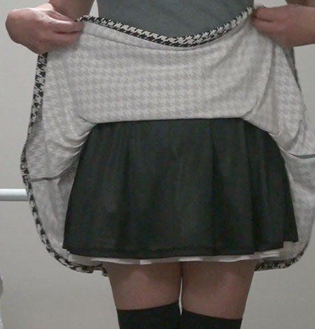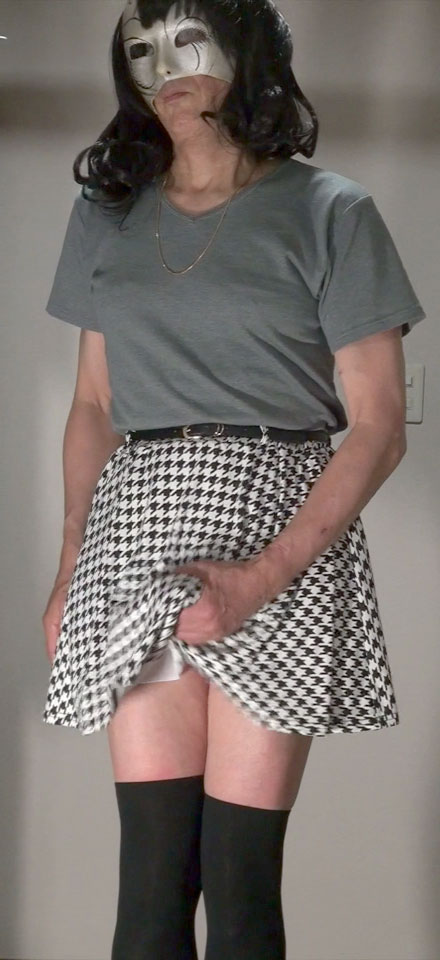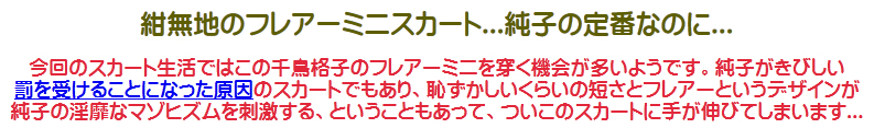 ああ...恥ずかしいわ...純子の千鳥柄のフレアミニスカートの前が膨らんでいるのが分かってしまいます...