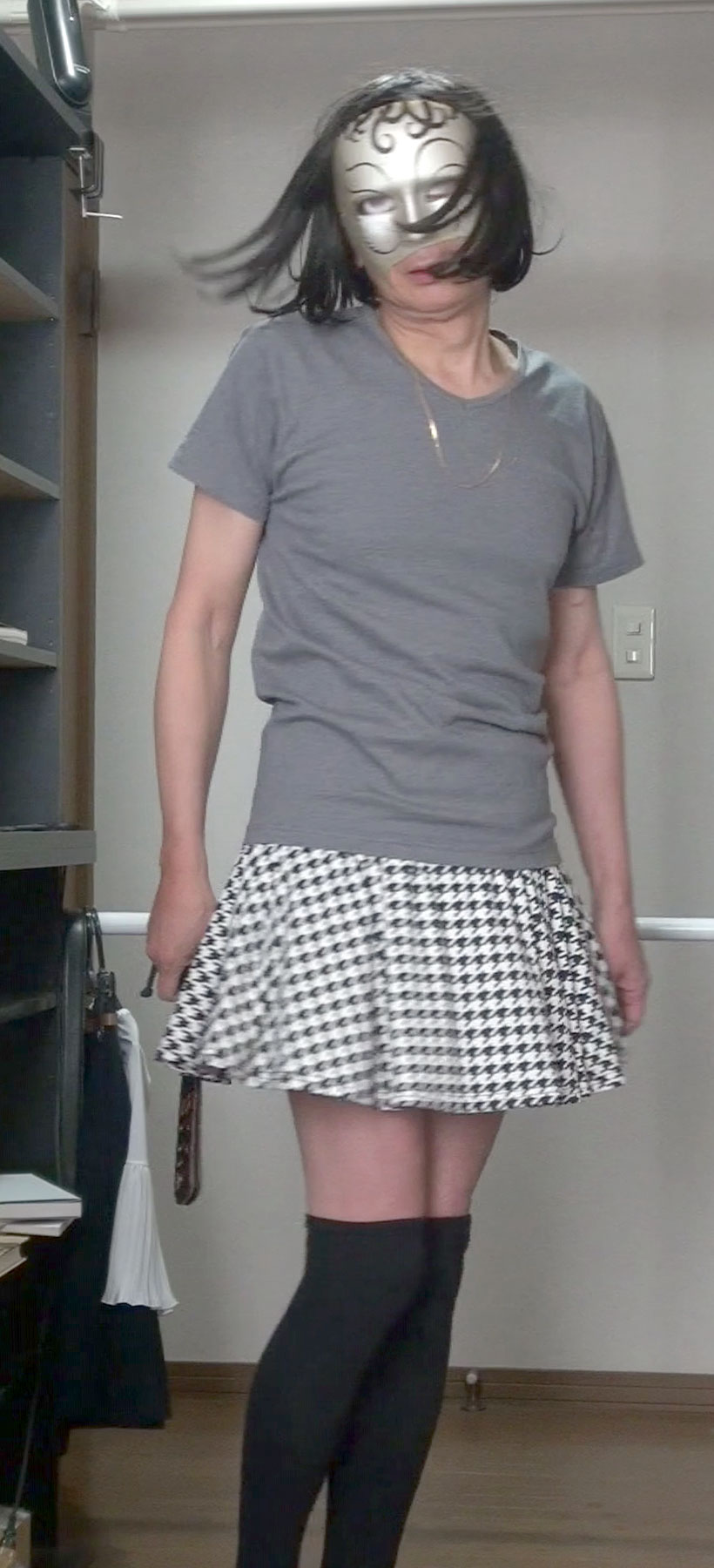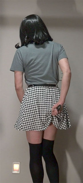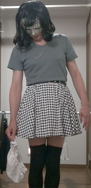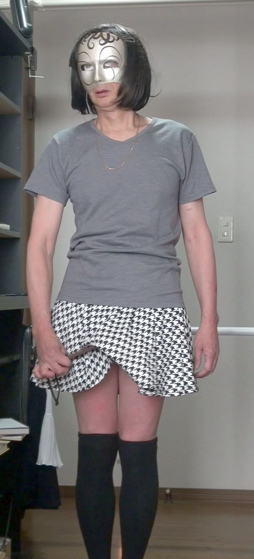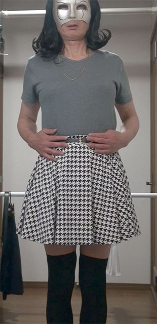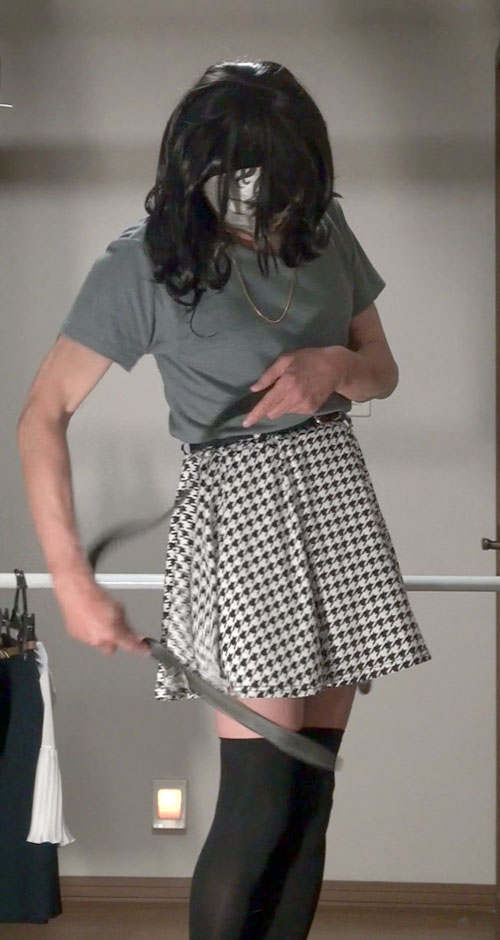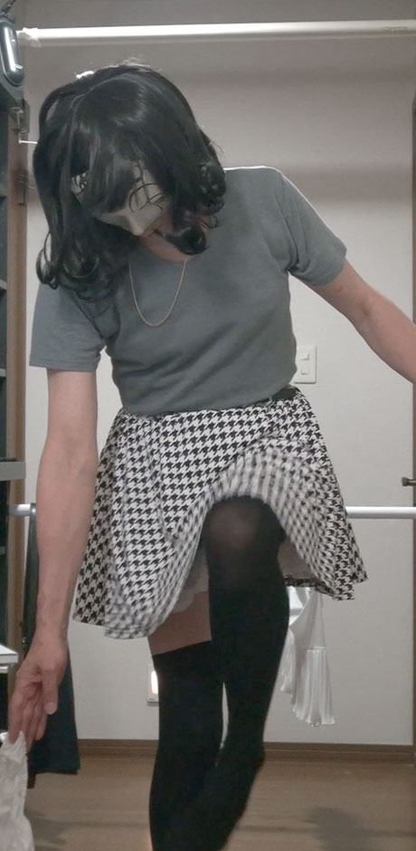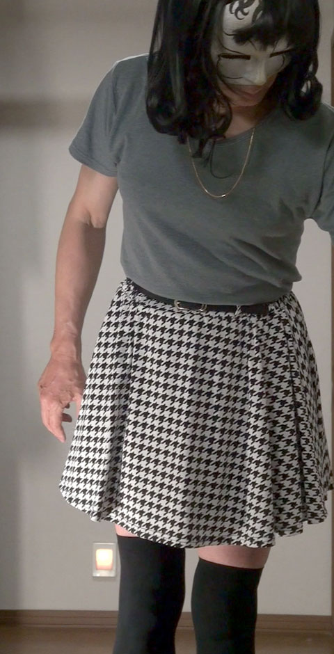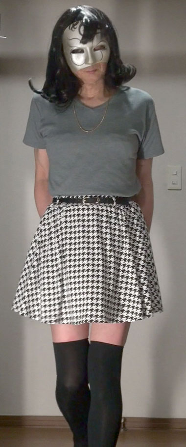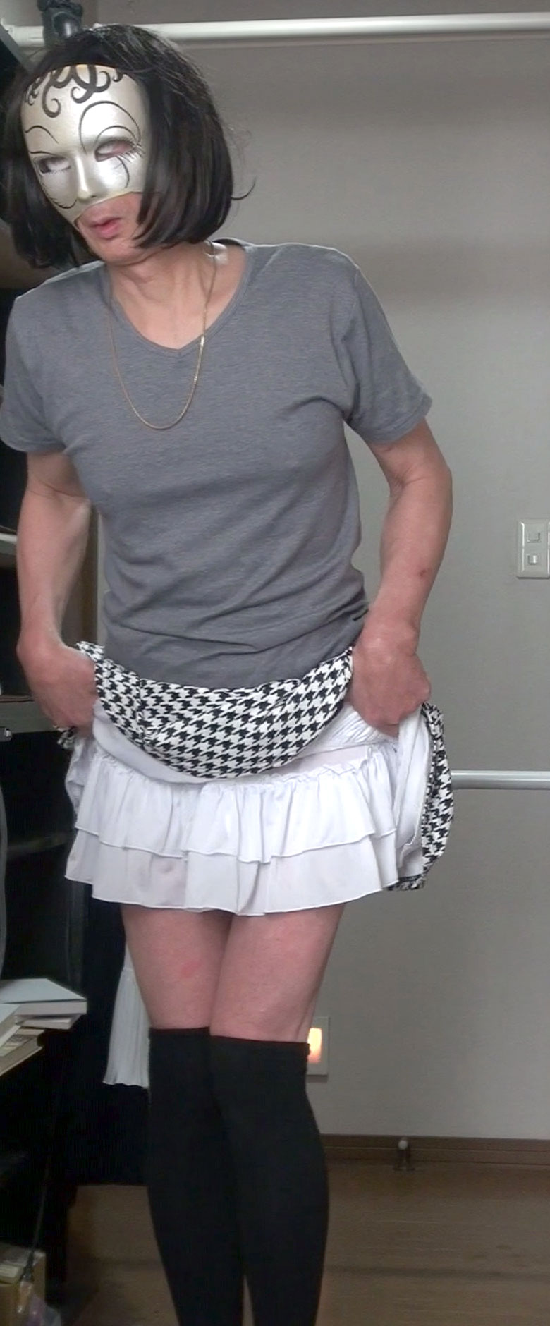ああ...恥ずかしいわ...純子の千鳥柄のフレアミニスカートの前が膨らんでいるのが分かってしまいます...