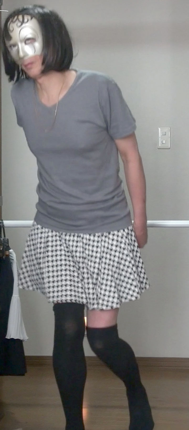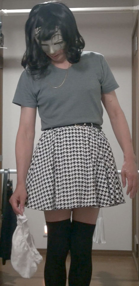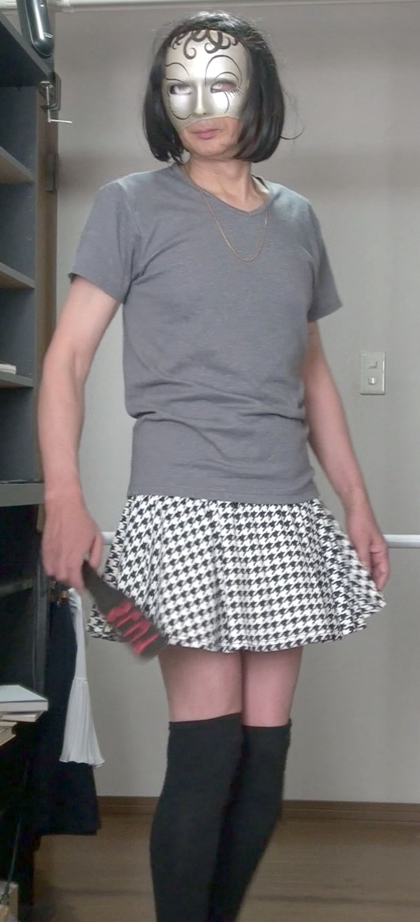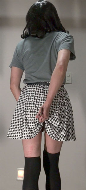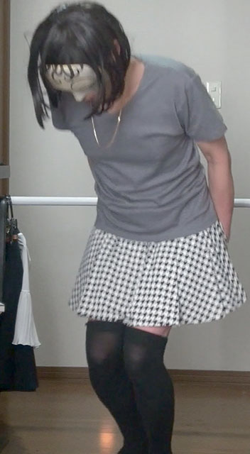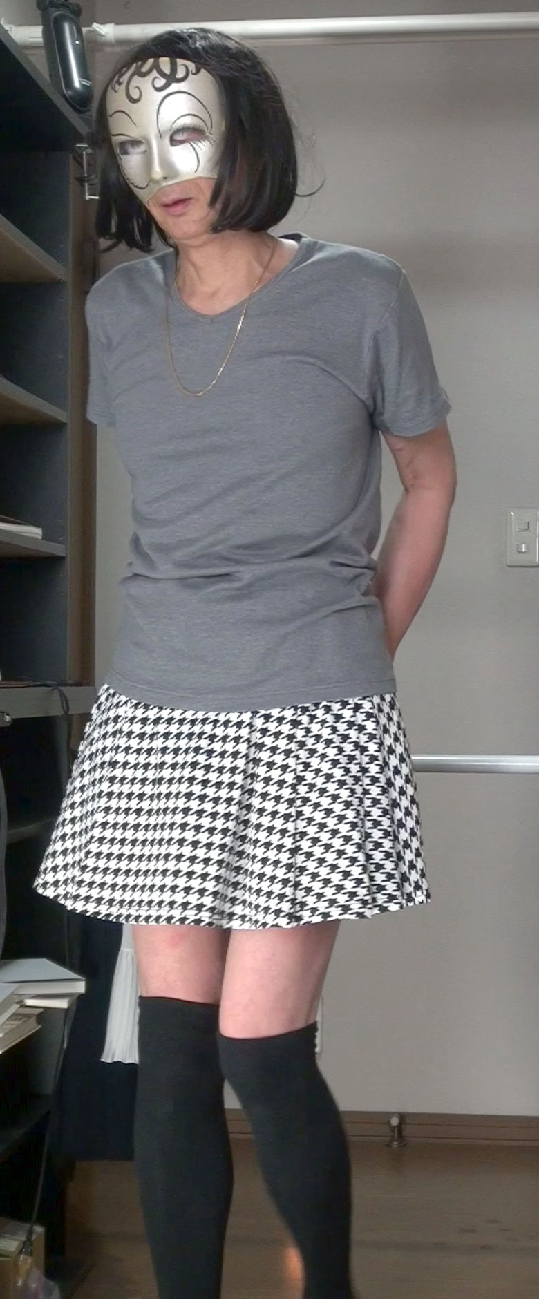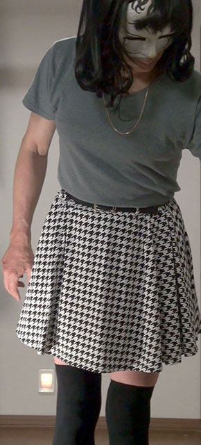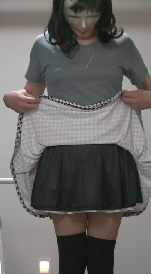 ああ...恥ずかしいわ...純子の千鳥柄のフレアミニスカートの前が膨らんでいるのが分かってしまいます...