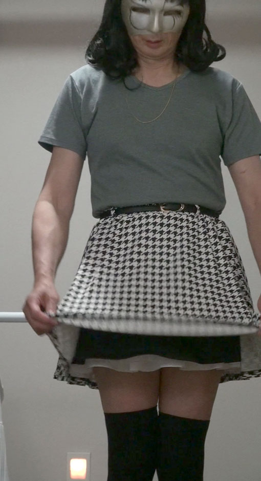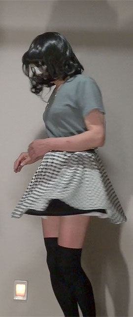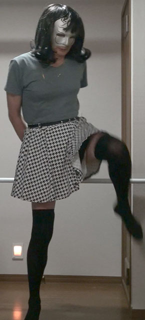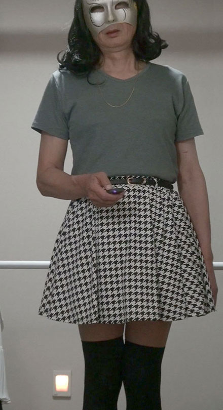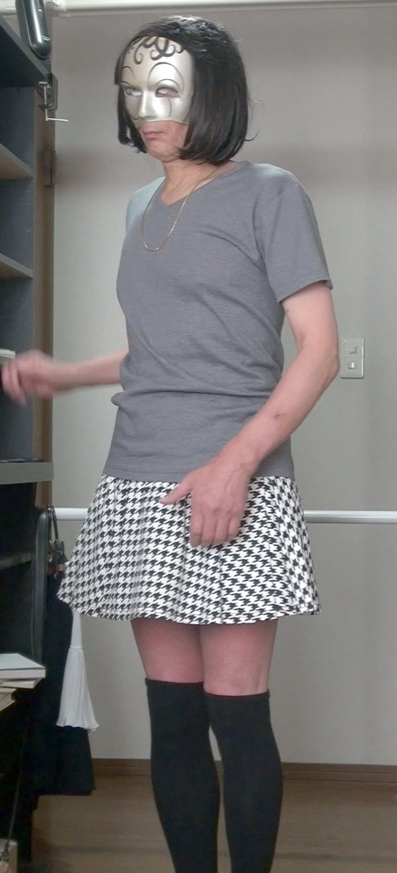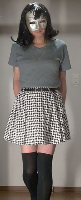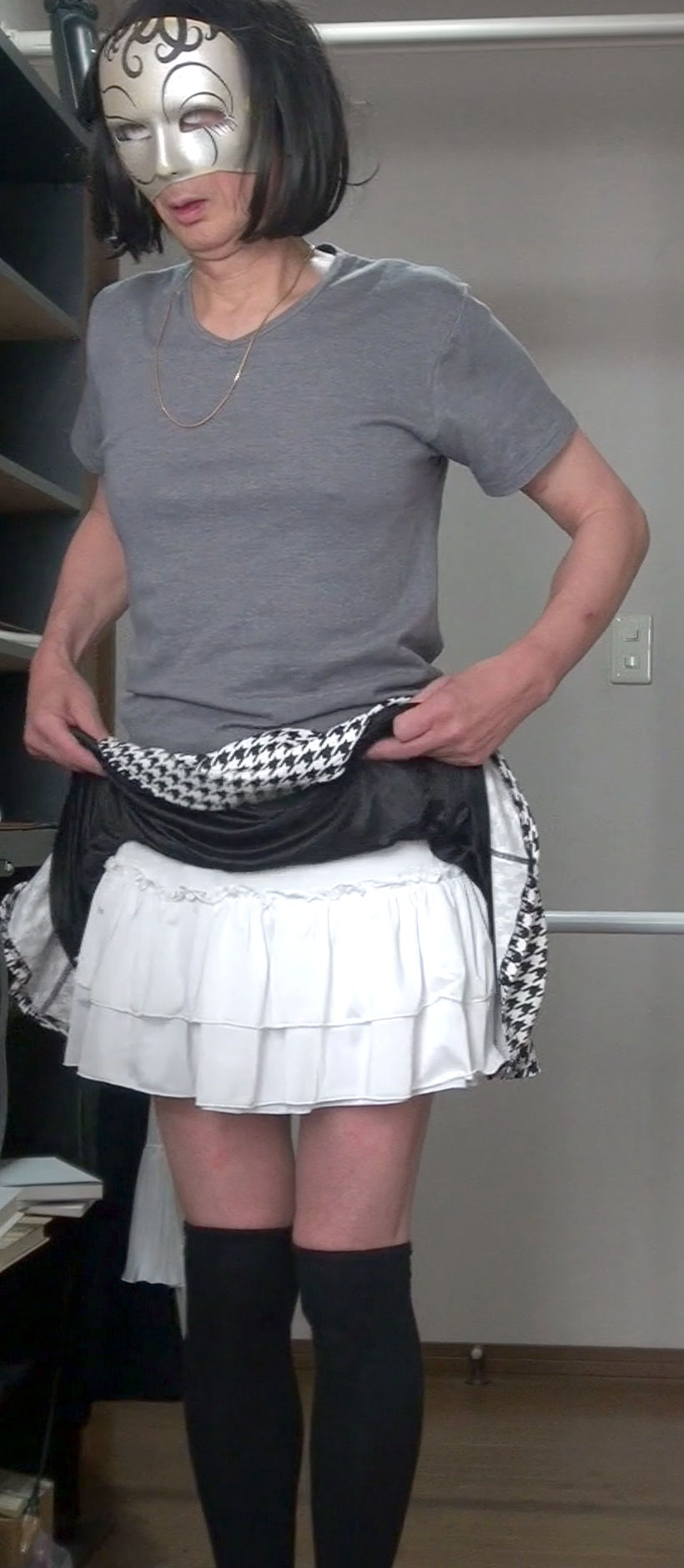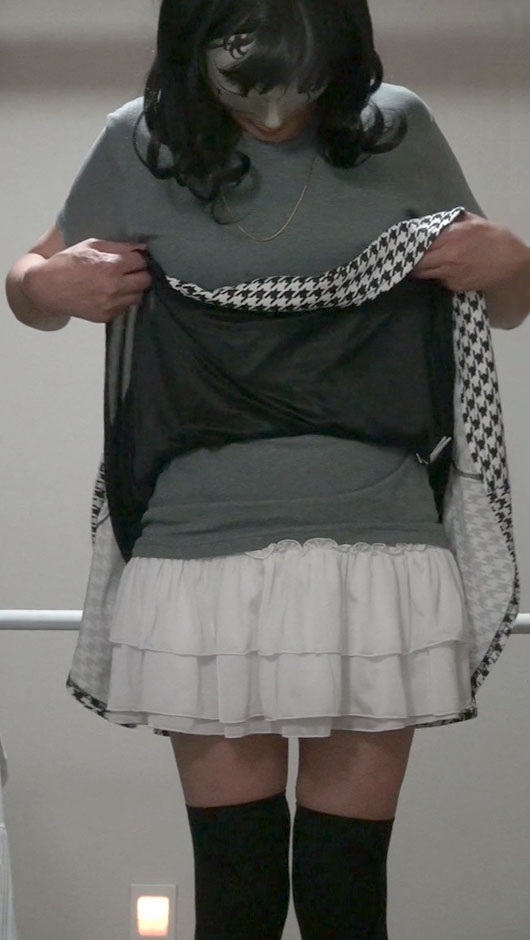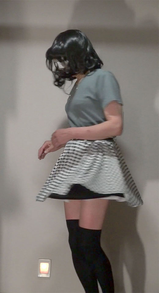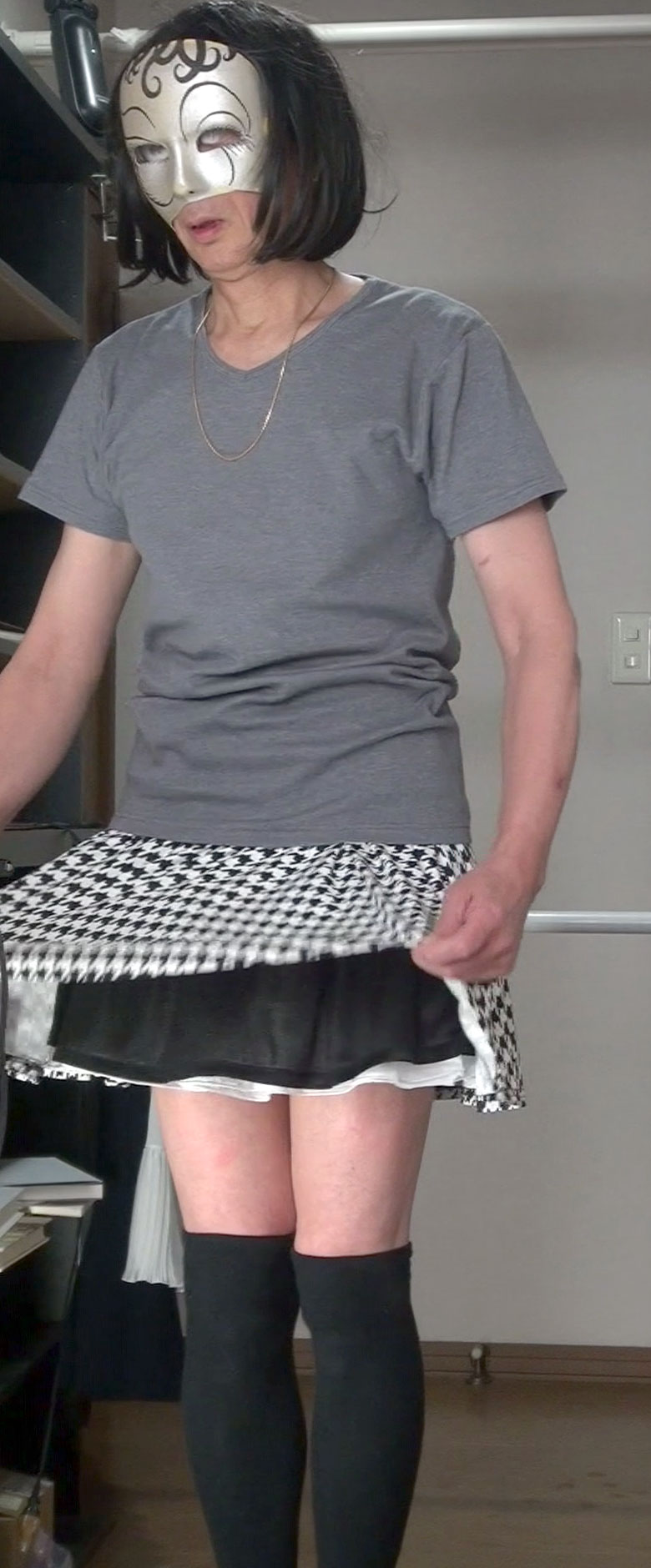 ああ...恥ずかしいわ...純子の千鳥柄のフレアミニスカートの前が膨らんでいるのが分かってしまいます...