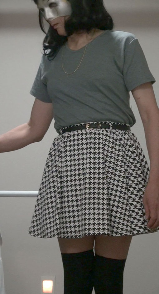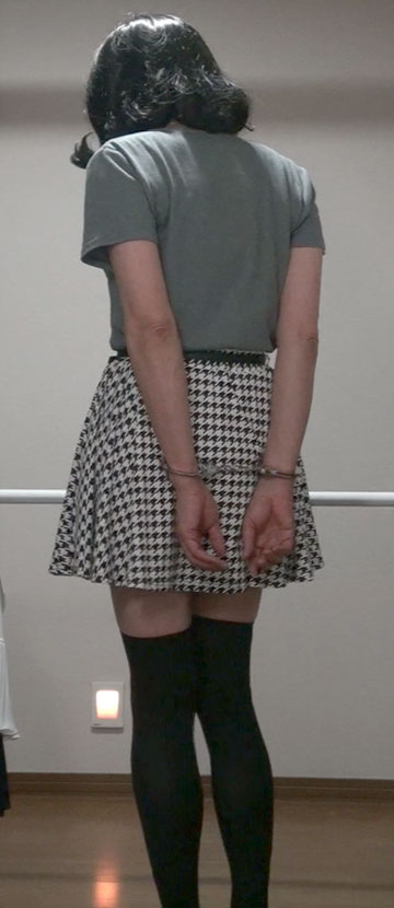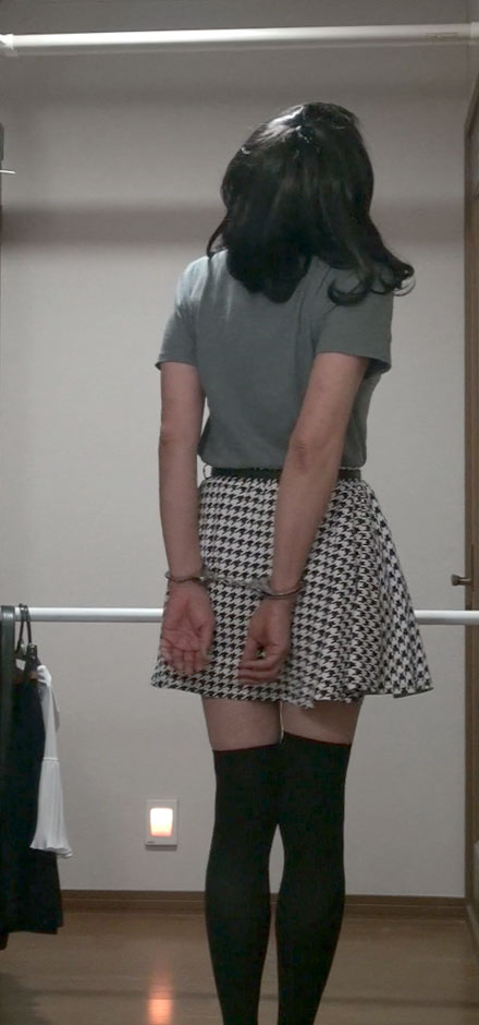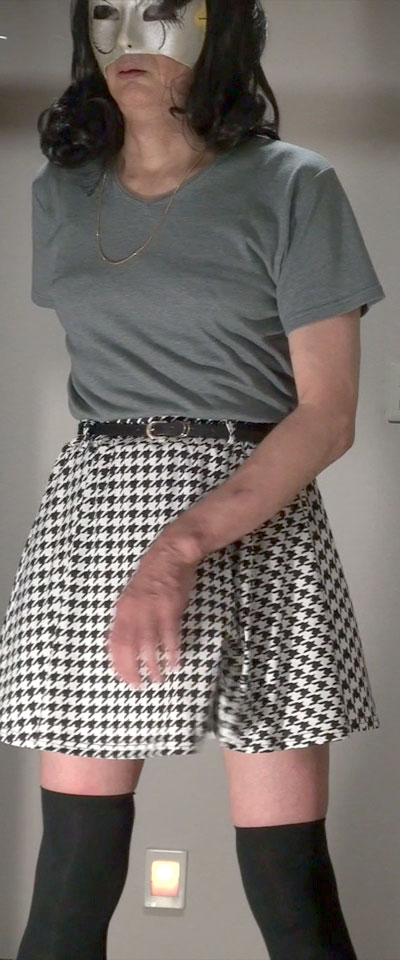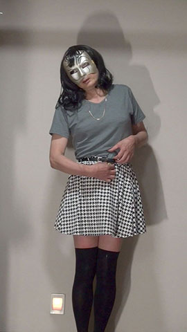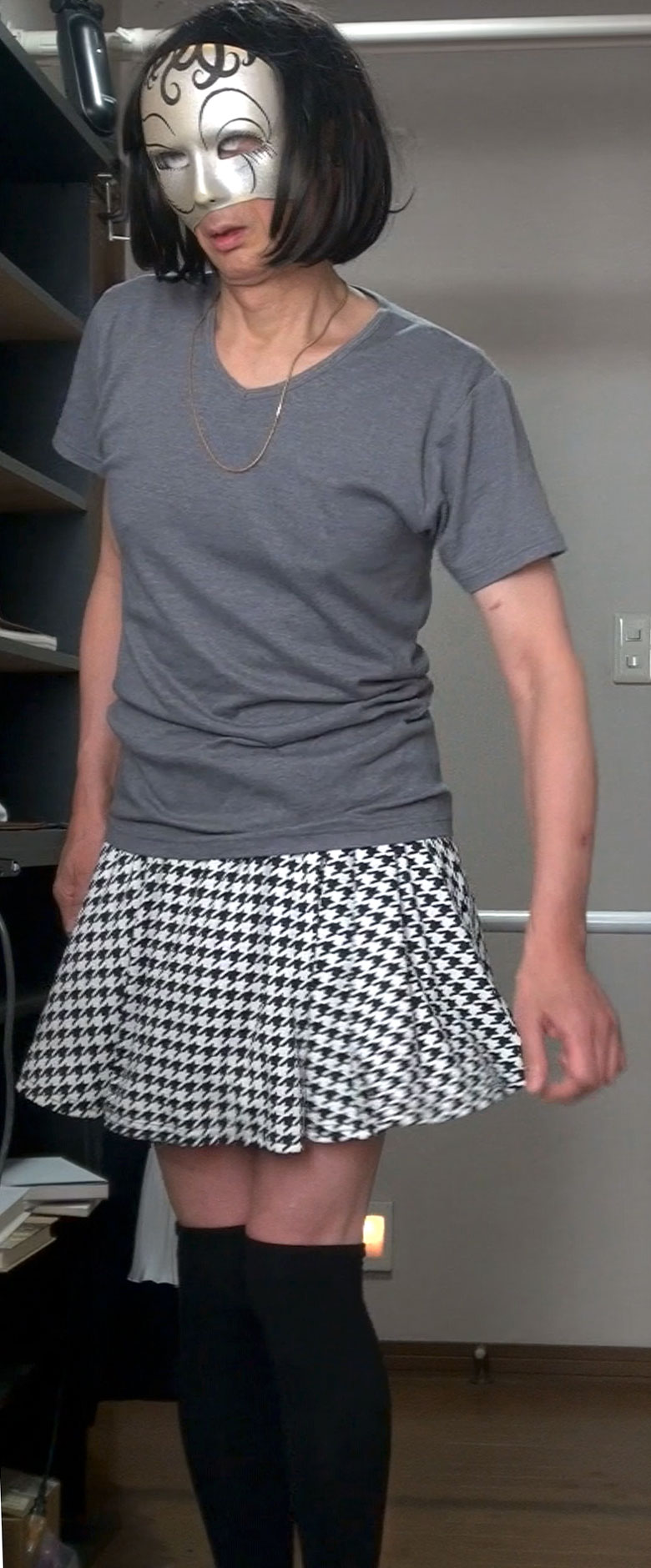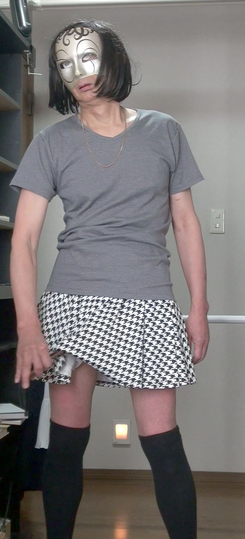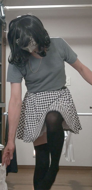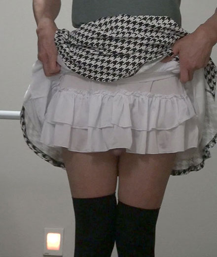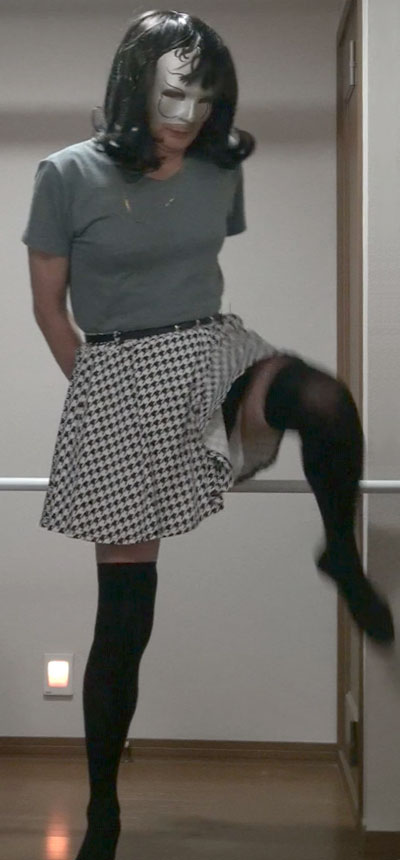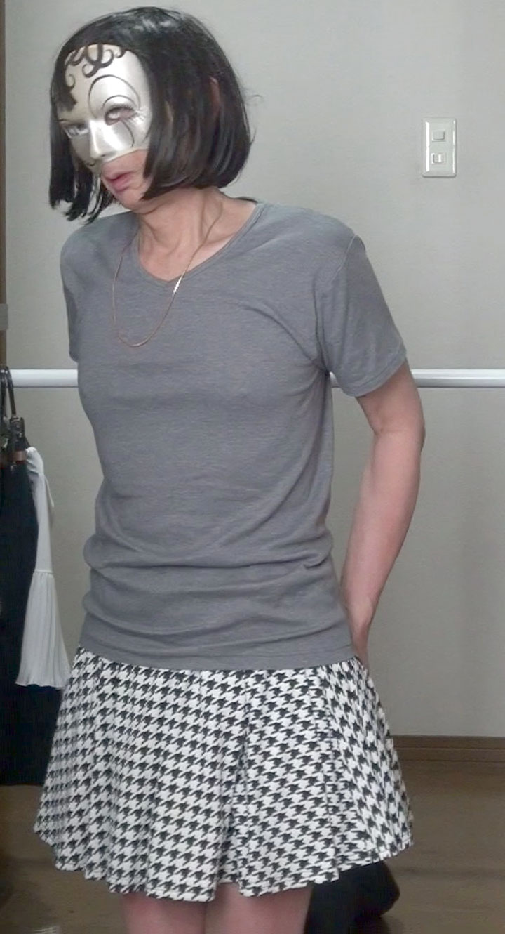 ああ...恥ずかしいわ...純子の千鳥柄のフレアミニスカートの前が膨らんでいるのが分かってしまいます...