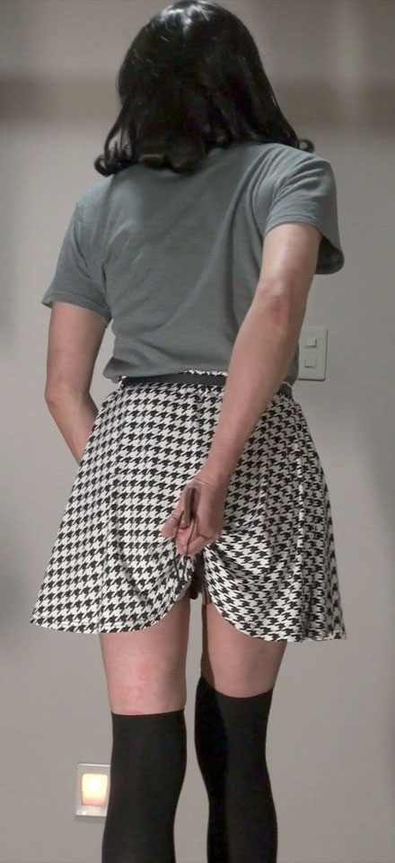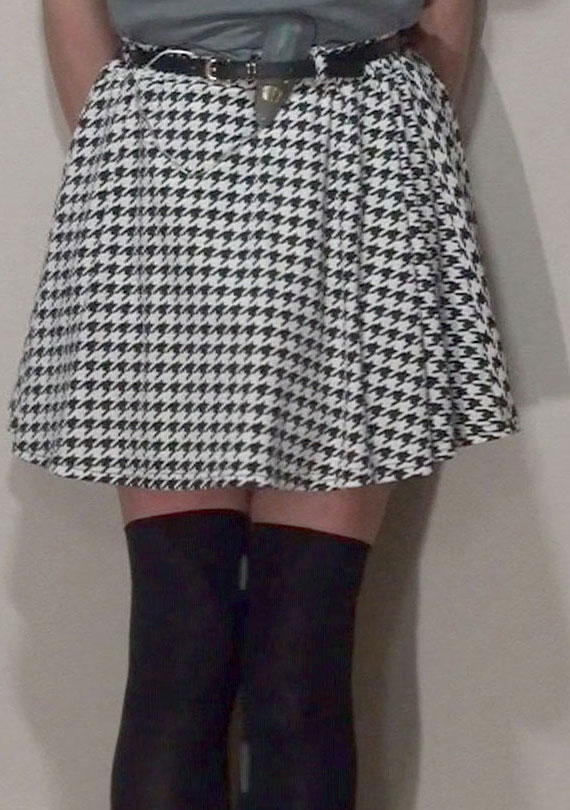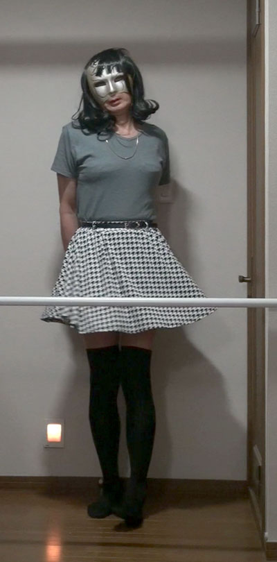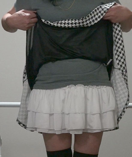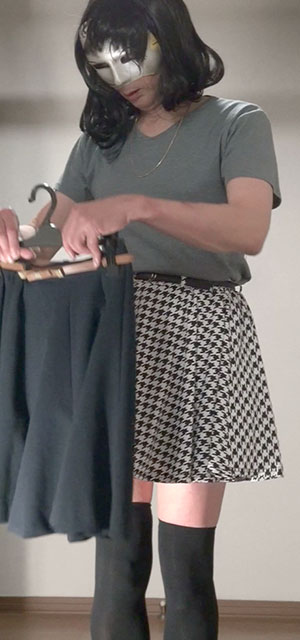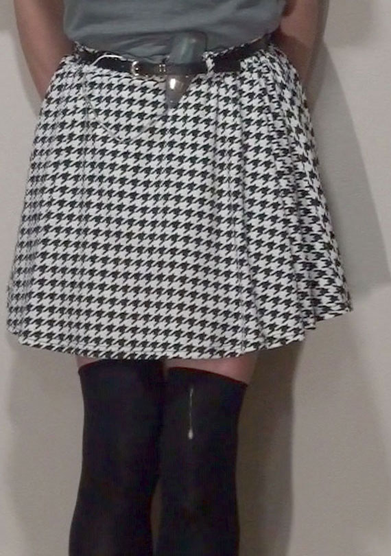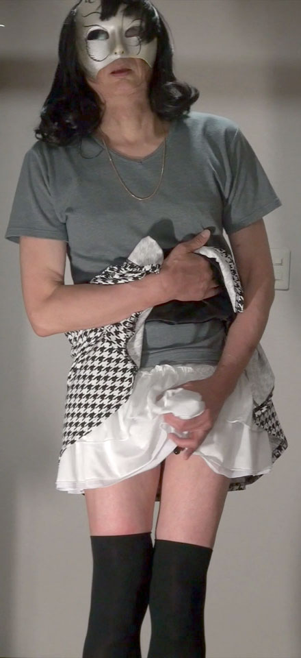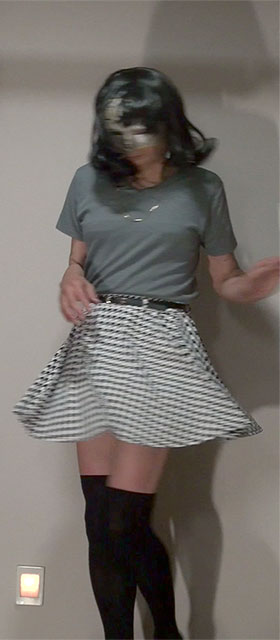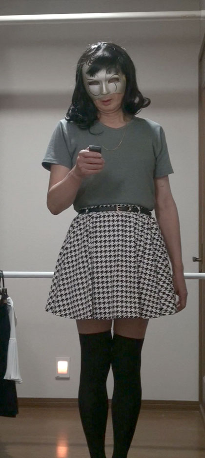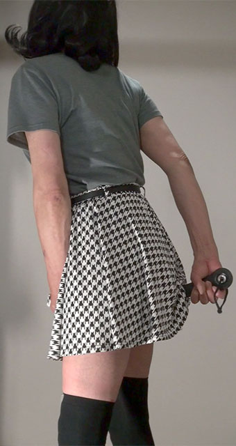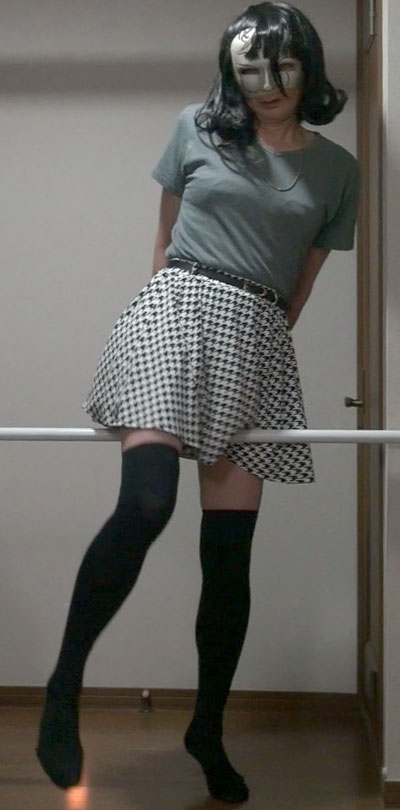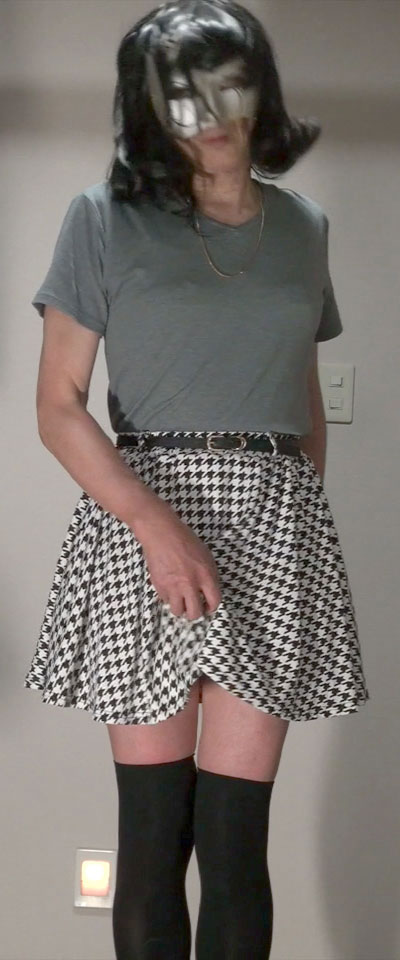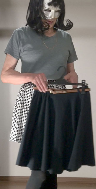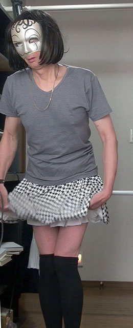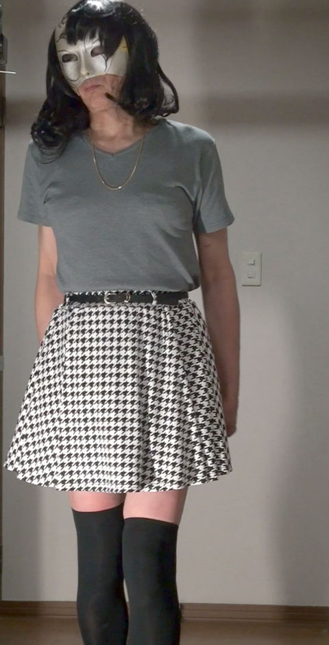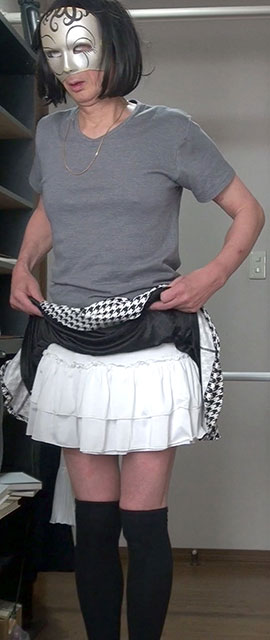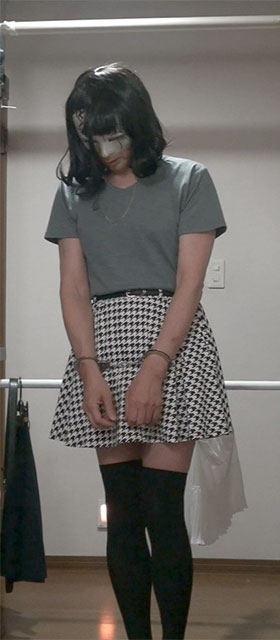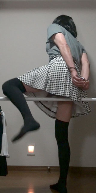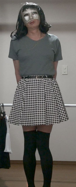 ああ...恥ずかしいわ...純子の千鳥柄のフレアミニスカートの前が膨らんでいるのが分かってしまいます...
