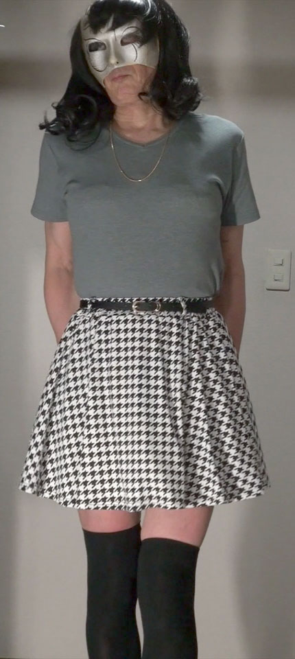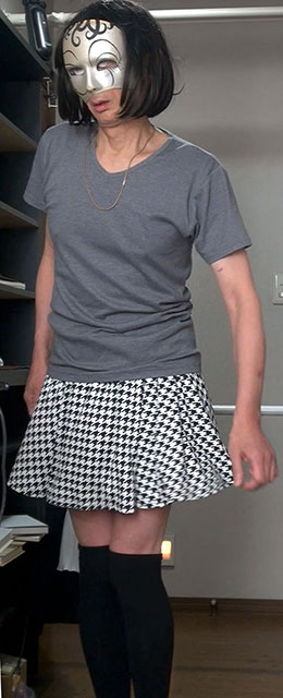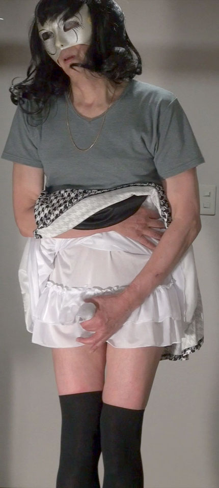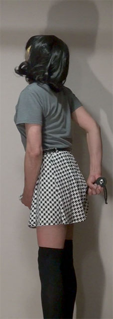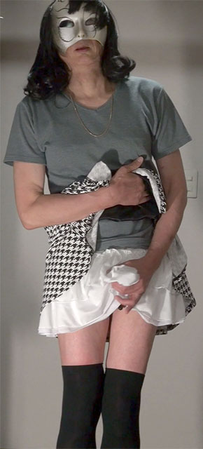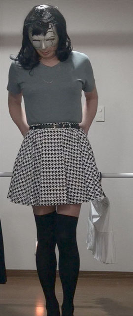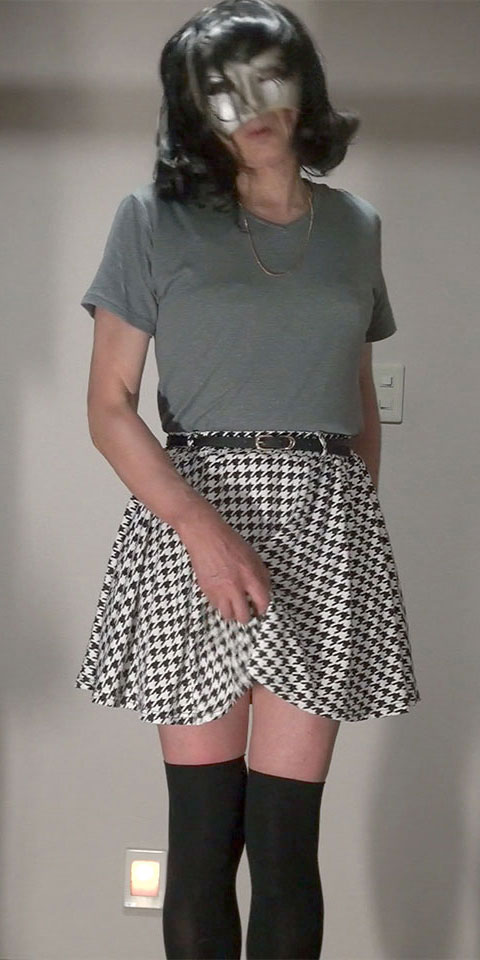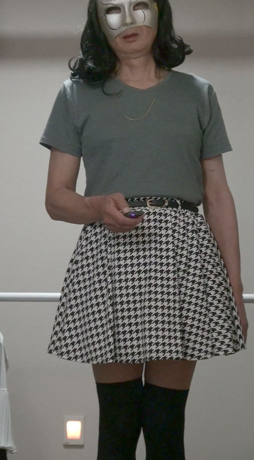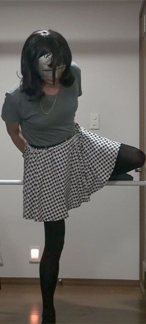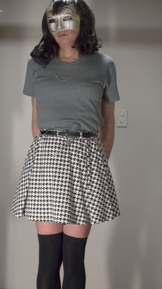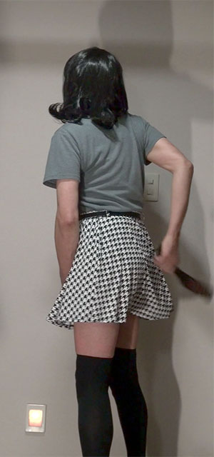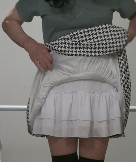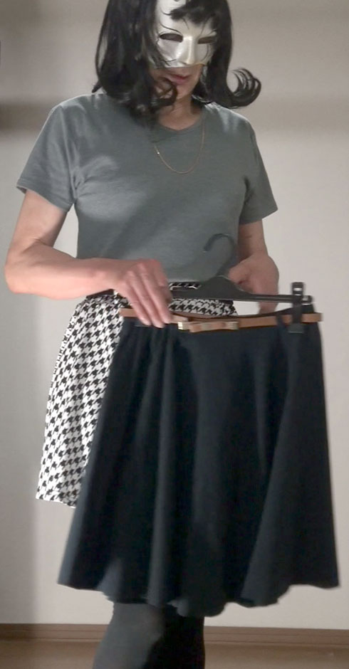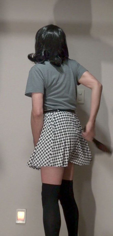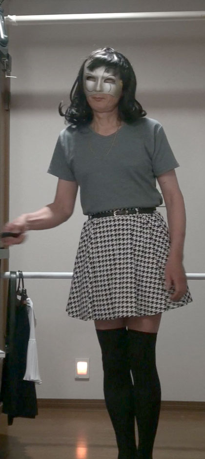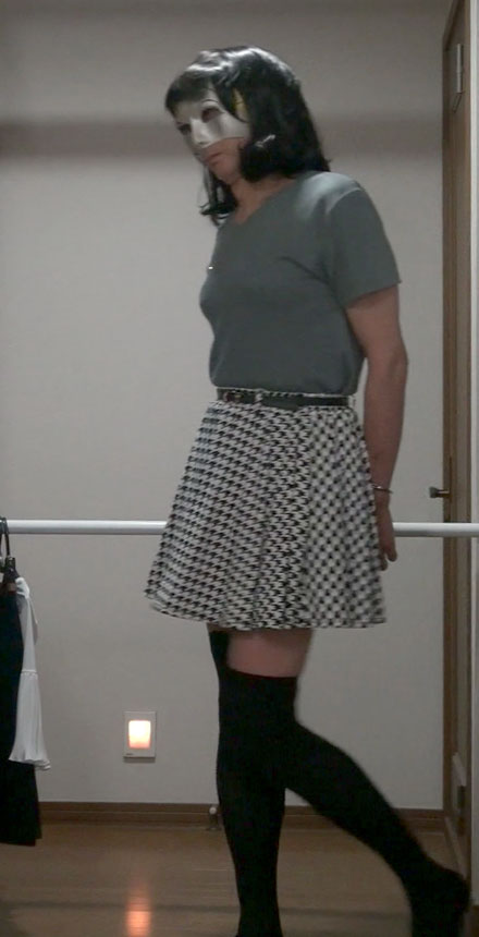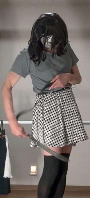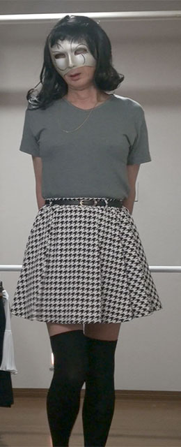 ああ...恥ずかしいわ...純子の千鳥柄のフレアミニスカートの前が膨らんでいるのが分かってしまいます...