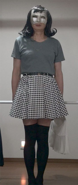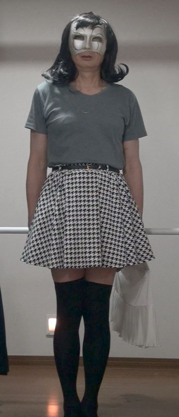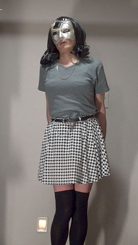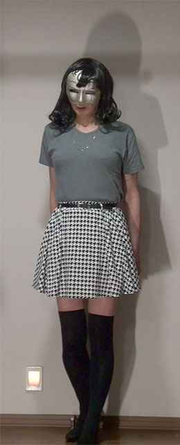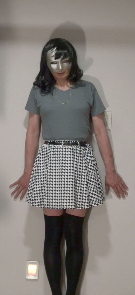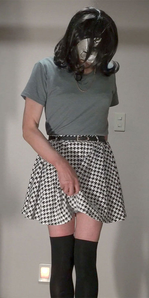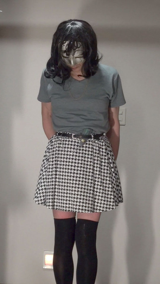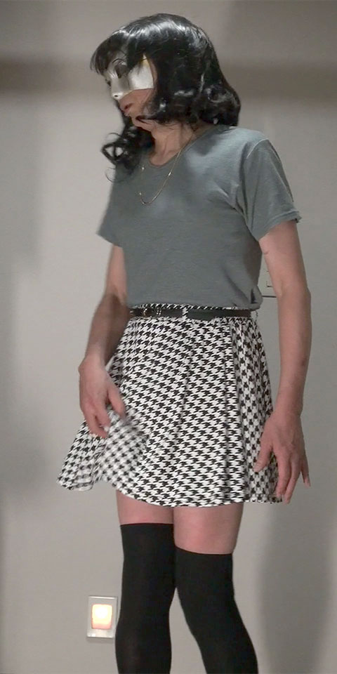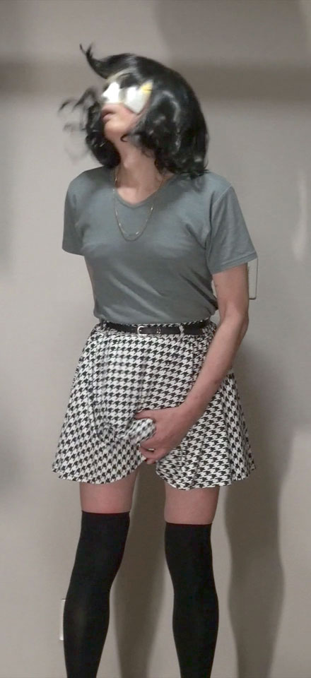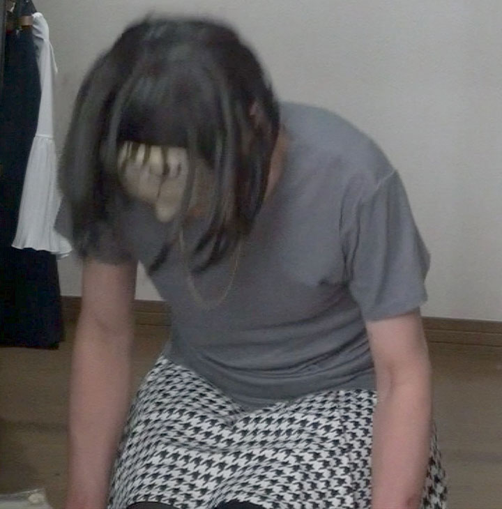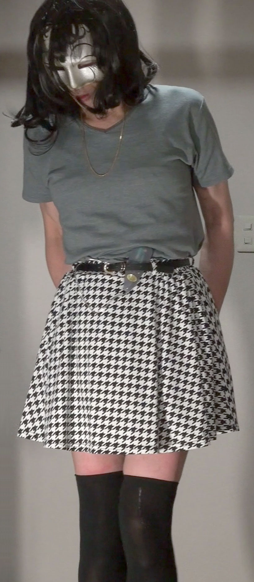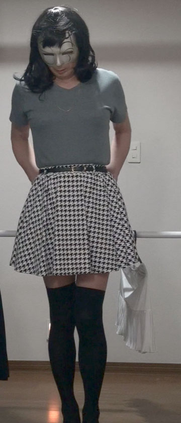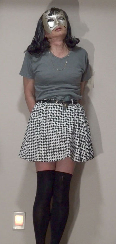 ああ...恥ずかしいわ...純子の千鳥柄のフレアミニスカートの前が膨らんでいるのが分かってしまいます...