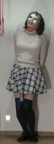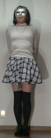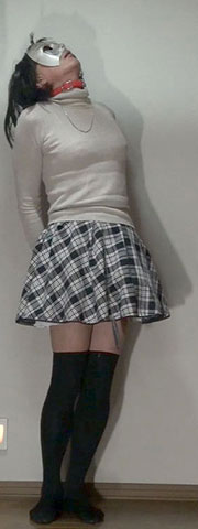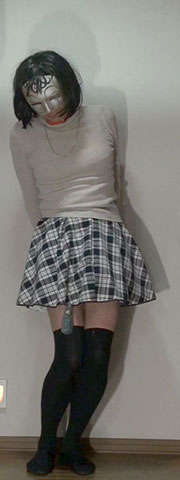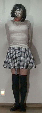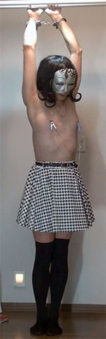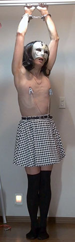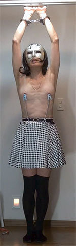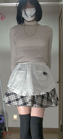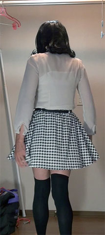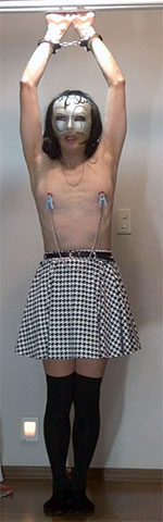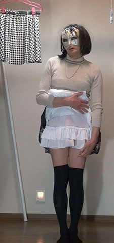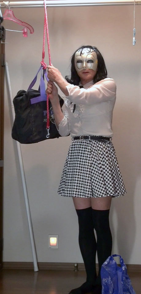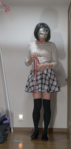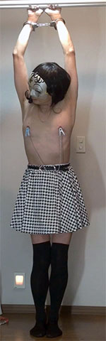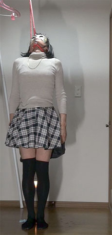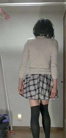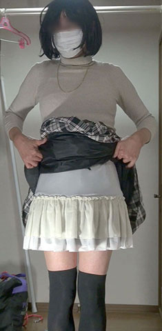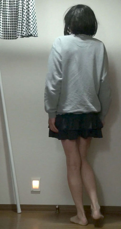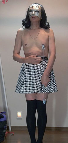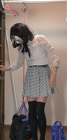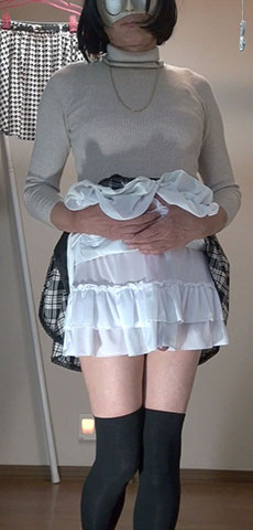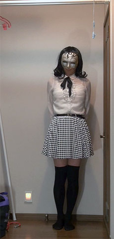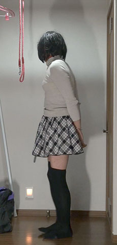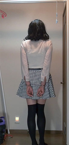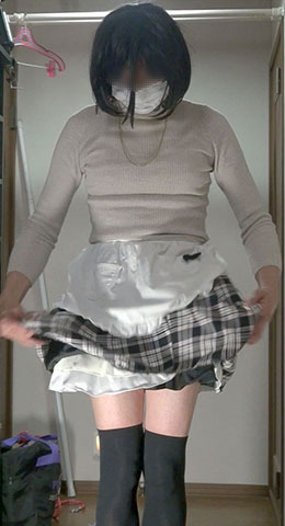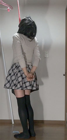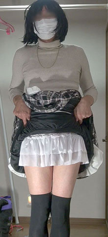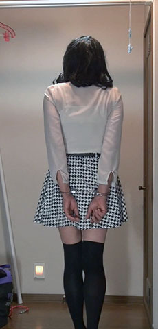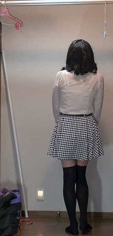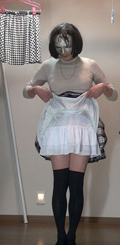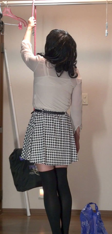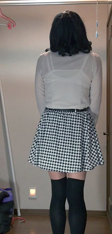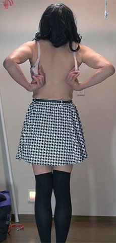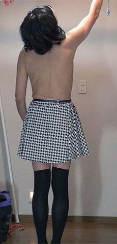 ああ、恥ずかしい...ブラウスが透けてブラジャーやキャミソールの肩紐が見えちゃっています。しかも肥えた純子のからだにピチピチで...