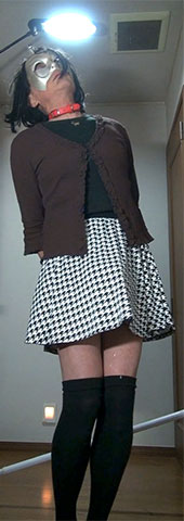 ![]() ![]() ![]() いろいろなスカートたち...上・右端の紺無地フレアーミニは純子のお気に入りでしたが、ウエストが今でギリギリ...真ん中のタイトミニも、この時だけかろうじて... ![]() ![]() 赤いスカートってやっぱり目立つわね。目立つということは...通報されやすいということ...捕まえられて、捕獲車両で女装マゾ拷問・調教センターへ連行されやすい... [2016.12.28] ![]() ![]() こんな短いスカートの中ですっかり高ぶってしまった純子...赤い股縄で締め上げられた股間から恥ずかしく興奮した性器を剥き出しにされて...変態女装マゾ!... [2017.01.02] ![]() ![]() ![]() 紺色のフレアーミニスカート...トップスは男物の半袖白ワイ+ネクタイ...ちょっと倒錯的だけど、いちおう普通のスカート姿。でもその下は... [2016.12.28] ![]() ![]() また吊られている純子です。ただ今、ちょうど手錠をかけられて晒しものにされているところ...純子の被虐妄想の世界では、純子の拷問はこれから始まるの... [2017.01.04] ![]() |