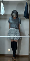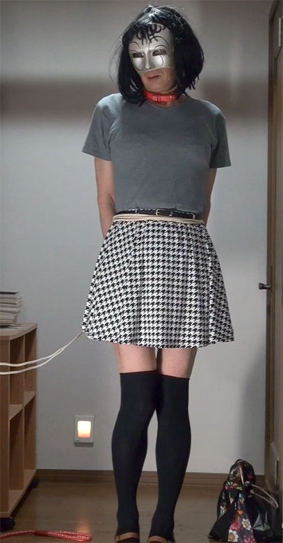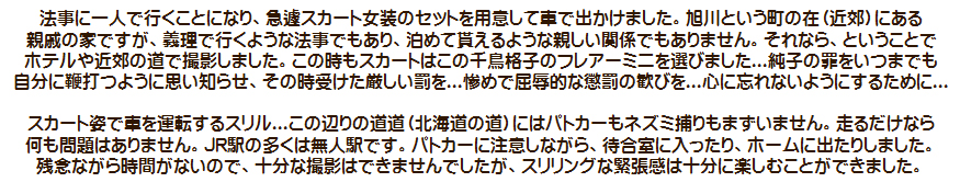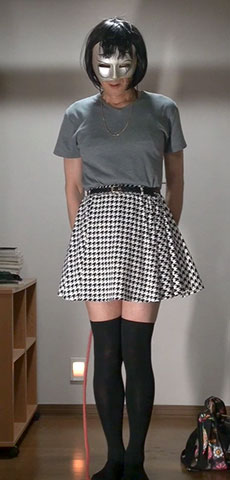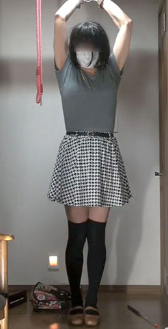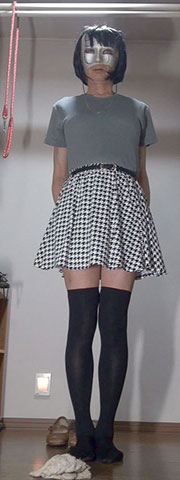 ![]() ![]() ![]() この夜は性欲に駆られて、とても大胆になっていました。こんな短いフレアースカートで、夜とはいえ人通りの多い駅に行くなんて!しかもエレベータにも乗って! JR_station_elevator_L.mov 限定アクセスですが、どうぞお試し下さい... ![]() 今、下の記録で確認したところ、夜の外出だけでちょうど10回ありました。途中断念やミニパト遭遇も含めて...いろいろなスカートで... ![]() ![]() 外出から戻って、まだスカートの下でからだが高ぶっている純子です。ああ、こんなスカート姿で歩いて来たんだわ...見られてきたんだわ... junko_backhome1M.mov 限定アクセスですが、どうぞお試し下さい... ![]() ![]() ![]() スカート姿で逮捕され、立たされて訊問を受け、下着検査で全裸に剥かれた純子...後ろ手に縛られて引き回された後、両手を天井に吊り上げられて拷問を待つ純子... junko_backhome4M.mov 限定アクセスですが、どうぞお試し下さい... ![]() [2017.04.14] |