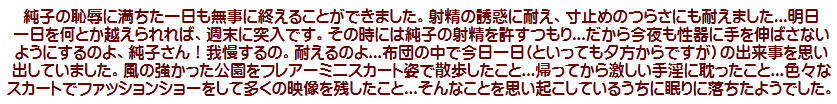 最近の純子がスカート姿で耽る2つの妄想... ![]() ![]() ![]() |