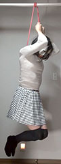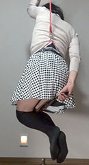 ![]() ![]() ![]() スカートの裾から伸びる細身の蛇...後ろで股縄に繋がれたロープです。会陰部を自分の体重65キロで蛇のように締め上げられるつらさ...ああ...高ぶってしまうわ... ![]() この夜のハイライトは片脚吊り...短いスカート姿で、片足を高々と吊り上げられるから、恥ずかしいからだが見えてしまう...とっても屈辱的な姿勢での調教でした... ![]() [2017.02.08] |