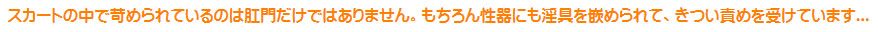 ![]() ![]() ![]() こんなに短いスカートだけど、純子の恥ずかしい秘密を隠すには十分です。下にペチコートを重ねているけど、やっぱり秘所を守る砦の役割はスカートだわ... ![]() 純子は腰をいろいろな角度や方向に動かしてみます。ウシロを犯す淫具の当たり方...からだの中での当たり方...を調べています。一番つらい当たり方は?... ushiro_wo_okasareteiru_junko_M.mov ![]() 純子の股間をきびしく締め上げる赤いロープの股縄...これって責め具の働きのほか、性器やウシロをいじめる淫具をからだに留めておく働きもするスグレモノ! ![]() [更新:2016.03.28] |