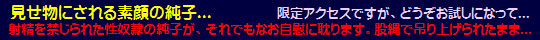 ![]() ![]() 女装の企業スパイとして生け捕りにされ、きびしい訊問と屈辱的な拷問を受ける妄想に耽ります。股縄で吊り上げられたまま、性器を剥き出しにされて... ![]() [2016.08.26] |