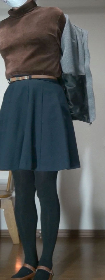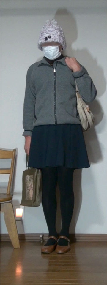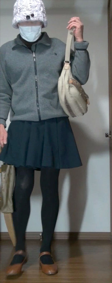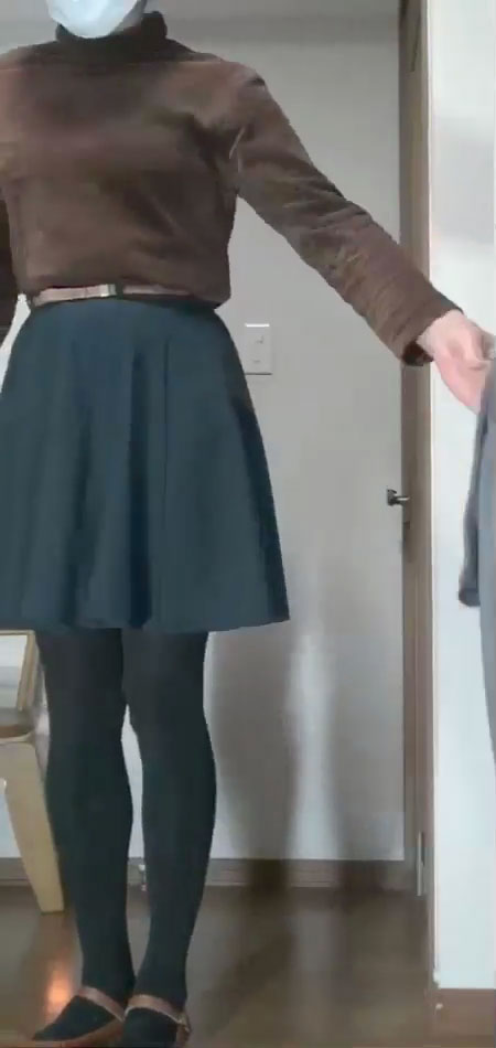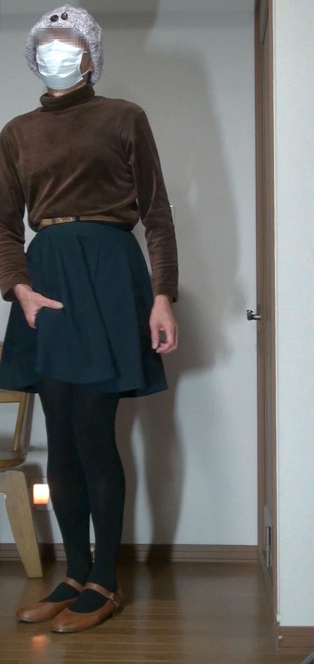 裾広がりのスカートの中には冷気が遠慮なく忍び込んで来ます。股割れパンティから剥き出しに