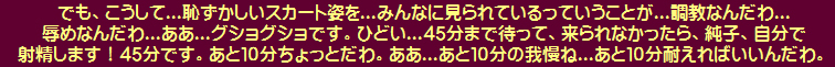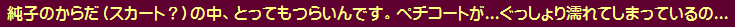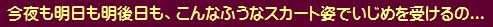 スカート姿で待ち続ける純子...自分が苛められる時を...辱められる時を...スカート姿で待つ純子...スカートの中で陰湿な仕打ちを人知れず受けながら...