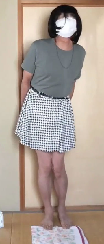 妻を刑場に招き入れ、よろしくお願いしますと懇願しました。スカート姿の女装夫は妻の奴隷...妻におもねり、媚びへつらわなければ射精は許されません。