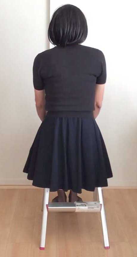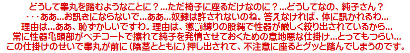 睾丸を踏んだ瞬間の純子。この後の純子は動転してしまって醜悪です。動画ではカットしてあります...