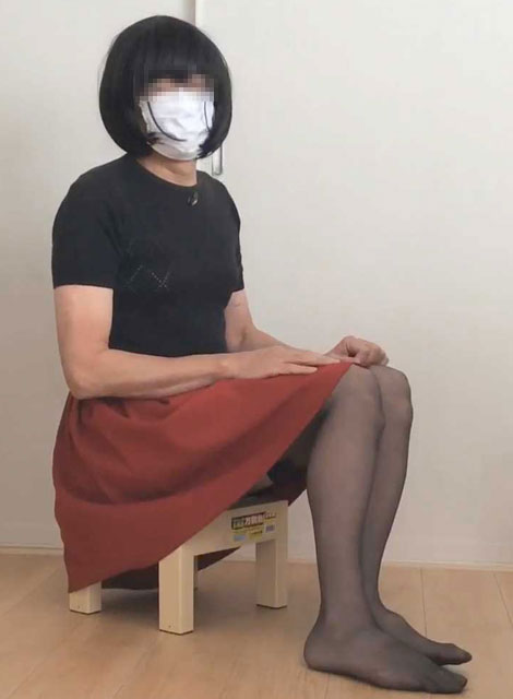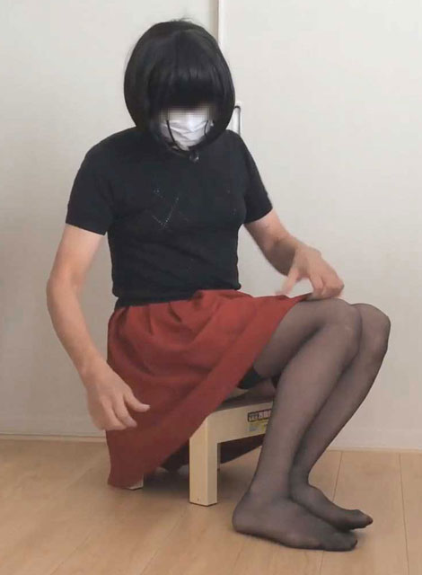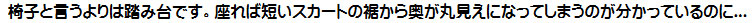 短いスカートでこんなに低い椅子に座らせられれば、見る方向によってはストッキングの上の太ももの肌まで見えてしまう...純子を辱めるには絶好の小道具ね...