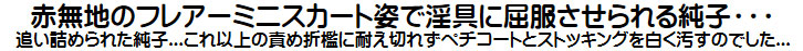 スカートの下で純子の性器は赤いロープの股縄で懲罰縛りを受けています。歩くたびに股間に股縄を感じさせられ、懲罰縛りで絞り出された性器はペチコートで擦られて...