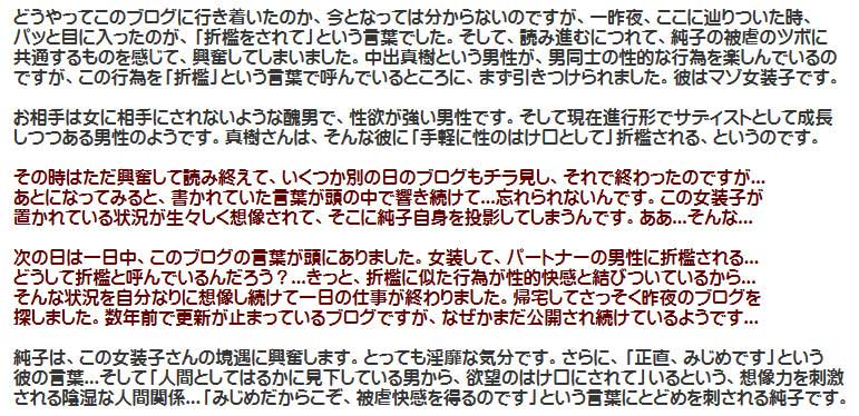 上と同じく、太字の部分は純子が興奮するところ、太字で下線部はその言葉に純子の胸が高鳴るところです...
