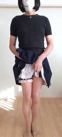 今年2018年最初のスカートには、やはり紺無地のフレアーミニスカートを選びました。性奴隷純子の制服です...
