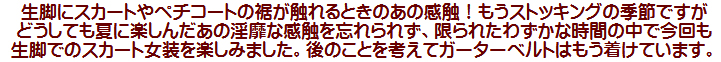 スカートの中で純子の太ももには、使われていない留め具が4つ、むなしくぶら下がっていますが、その存在を感じることはありません。