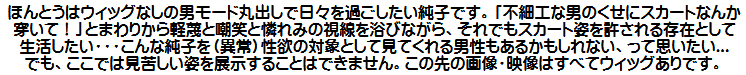 純子がもう一人いたら、純子には上のようなウィッグなしでスカートを穿かせて、その格好で思い切り辱めてやりたい...徹底的にいじめてやりたい...