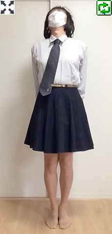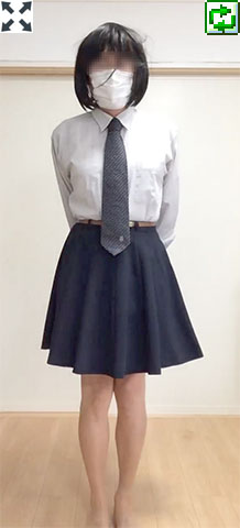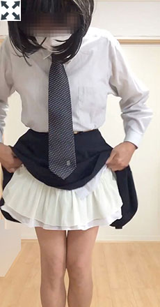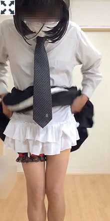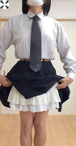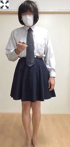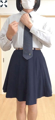 さらにネクタイも締めてみました。ちょっときつ目に...ネクタイをした方がフォーマルに見えるから...清楚・清純ふうの外見とスカートの中の異常変態のコントラスト!