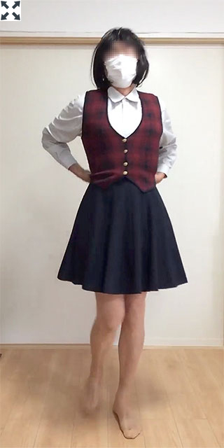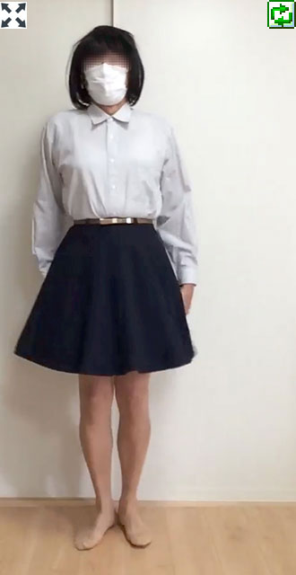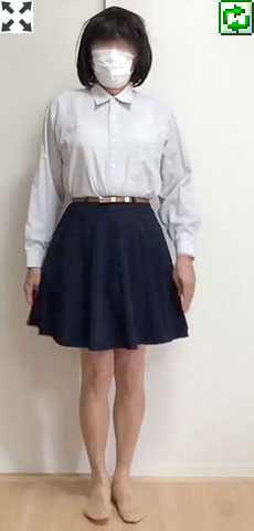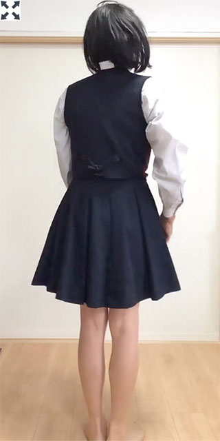 パッと見にはファミレスやカフェのウェイトレス?こんなブスなのにお笑いぐさ...でも純子は本気でこんなスカート姿でご主人さまにお仕えしたいと思っています・・・
