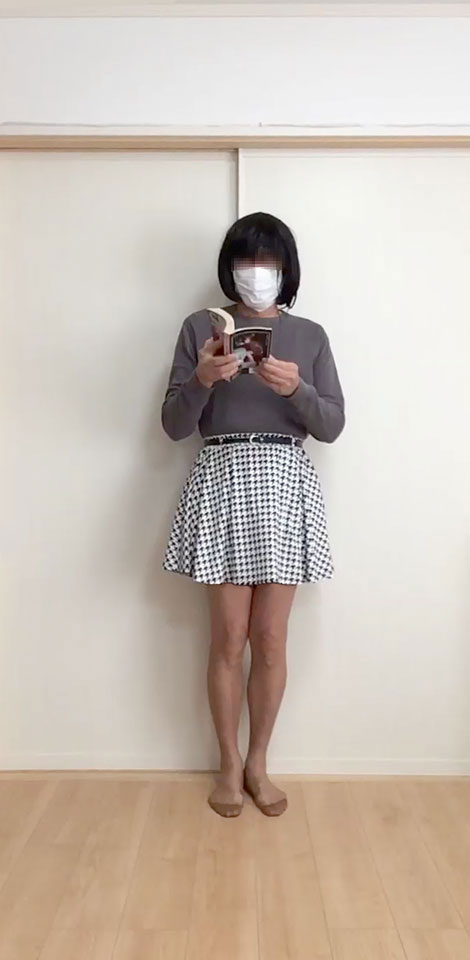 今日はご主人さまから指定されたポーズでの撮影...そのため、この千鳥柄フレアミニスカートを選びました。