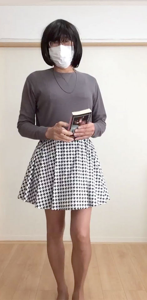 今日はご主人さまから指定されたポーズでの撮影...そのため、この千鳥柄フレアミニスカートを選びました。