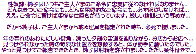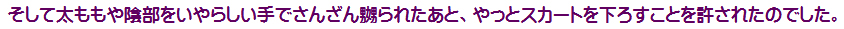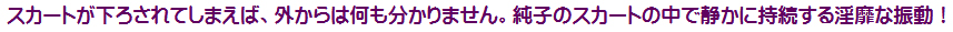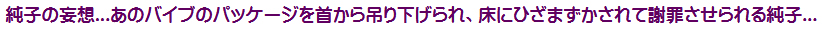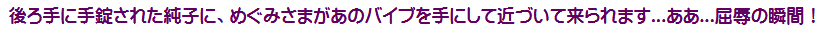 めぐみさまにスカートを捲り上げられて、あのバイブを無理やり性器に付けられる情景を思い描いて高ぶっています。ああ...そんな辱めに、純子、耐えられない・・・