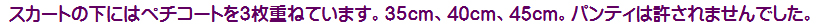 射精のお許しを頂いてから暮れ・正月と、どのスカートとトップスで儀式を行うか、ストッキングは何色にするかで、さんざん悩みました。さんざん濡れました・・・