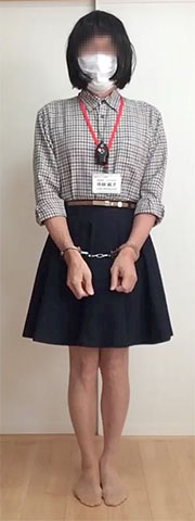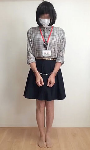スカート姿で手錠をかけられ、拷問室に連行された純子...