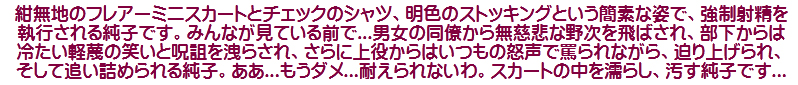 射精の気持ちよさ、切なさ、つらさに身を捩じらす純子にきびしい声が飛びます「顔を伏せるな!」「顔を上げろ!」...