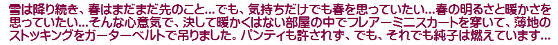 手錠の冷たく硬い拘束感が被虐の情感をいや増しに高ぶらせます。前手錠で、そして後ろ手錠での拘束...引き回し...晒しものにされる屈辱!...ああ...もう許して下さい...