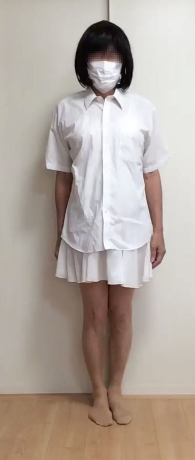 ブラウスといっても紳士ものの半袖ワイシャツです...写真では分かりにくいですが、下着(ブラジャー、スリップ)が透けて見えるのが恥ずかしい...