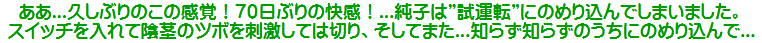 スカートの中でもう十分に熟れ切った純子のからだが淫具に迫り上げられ、そして追い詰められるのはあっという間のことでした。刺激のすべてが新鮮でした・・・