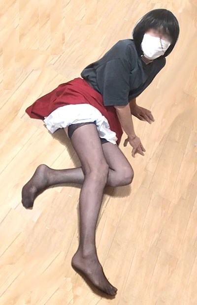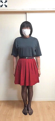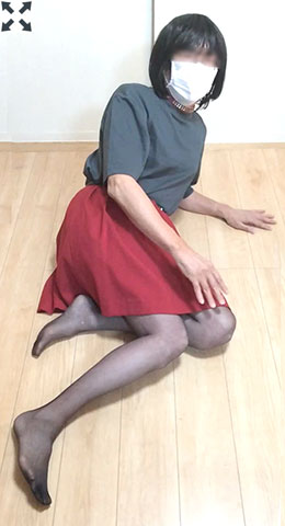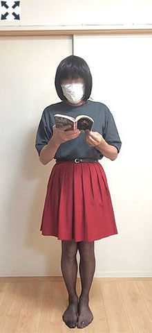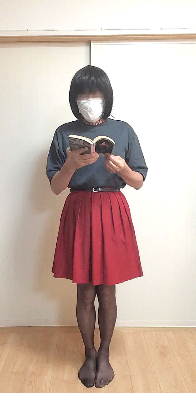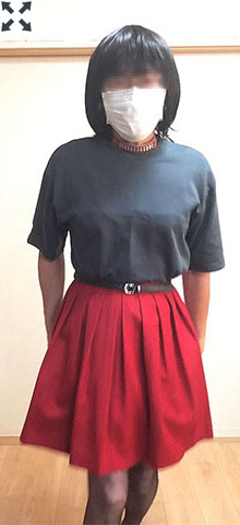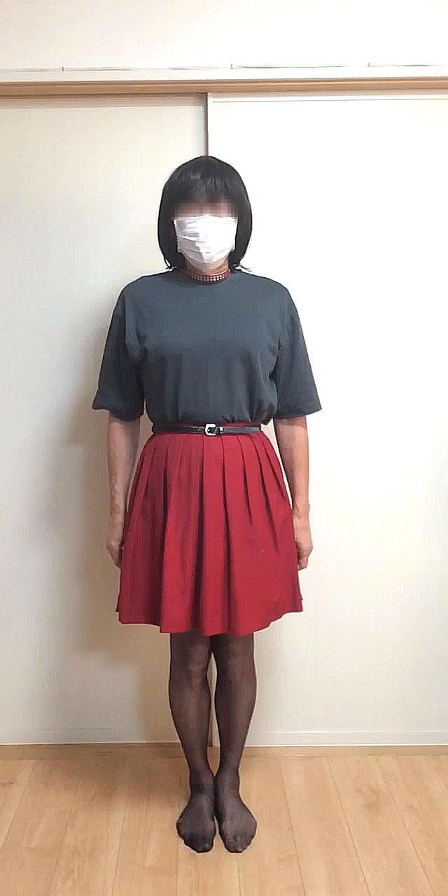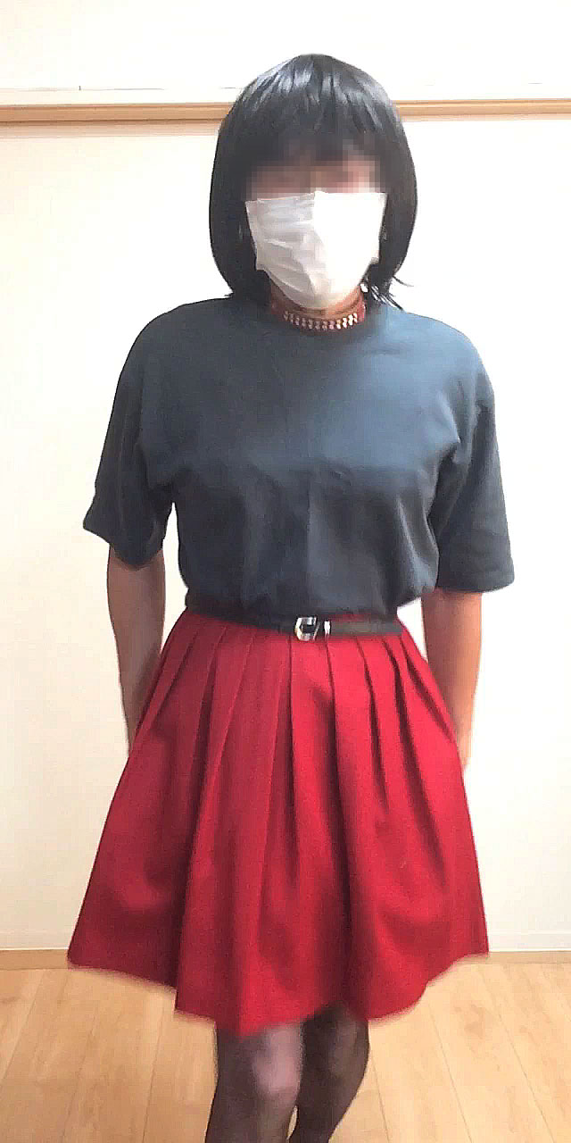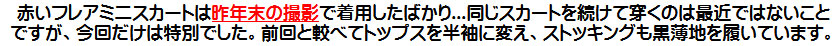 純子のトップスの下...この後の撮影では、ある理由からキャミソールを着けませんでしたが、この赤いスカートでの撮影の時は、キャミソールを着けています。久しぶりの胴着の感触...