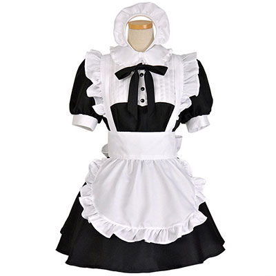 ランジェリーは昨夜のうちに澤村から渡されていたものを着けました。真っ白なキャミソールと3枚のペチコートセット。それからハンガーにかけられたメイド服...フリルの付いた白いエプロン、リボンの付いた濃紺のフレアミニワンピース...すべてを身に着けました。