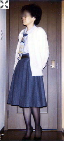 澤村がドアを開けました。二人ともベッドにはいないで部屋の壁際に立っていました。心なしか、一ノ瀬と妻には狼狽の気配が感じられました。何かの行為の途中でドアがノックされたかのように...その妻は先ほどまでと同じスカートですが、トップスが変わっているようでした。セーターをカーデガンに替え、ボウタイをつけています。僕にはこんな妻のスカート姿がとても新鮮に映りました。二人だけで一ノ瀬と妻は何をしていたのだろう?...妻は楽しそうです。何か楽しい話をしていたにちがいありません。妻と一ノ瀬の間には共通の話題が多いので精神的な共鳴の歓びも知っているし、もちろんお互いに体の歓びも知り合っているし...でも、夫の惨めで恥ずかしい女装姿を見ると、それまでの楽しそうな表情は急に曇って軽蔑のニュアンスが顔一面に現れたのです。ああ...裕子...一ノ瀬が意地悪い声で澤村に言いました。「どうしたんだ、澤村?...どうしてこいつを連れてきたんだ?...こんなまぬけのバカ野郎」...澤村が笑いながら言いました。「いや、これから応接室の掃除なんだけど、その前にちょっと遊ぼうかなと思ってね。」...一ノ瀬は澤村の意図を掴みかねて怪訝な顔をしました。妻はそんな一ノ瀬を見つめています。