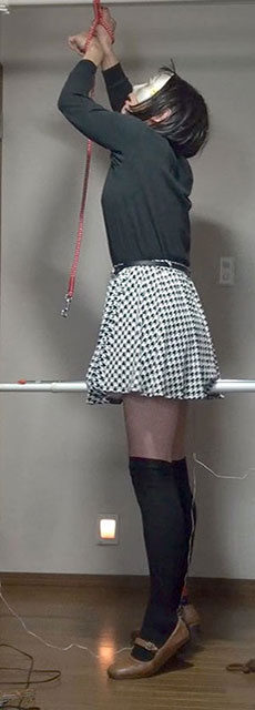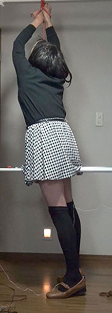スカート姿のまま、純子は真理子さまがご持参された綿のロープで後ろ手に縛り上げられました。きつい縄目の感触が純子の