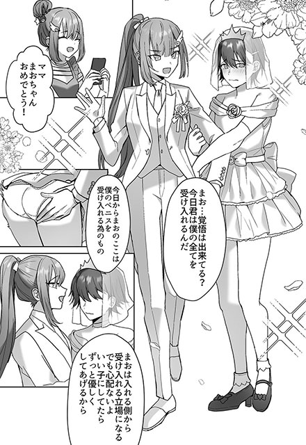ミニ丈の白いウエディングドレスを見た時、僕は以前に読んだコミックの一場面を思い出しました。それは恥辱庵さん作・ひみのさん絵の「ふたなり姉妹と寝取られ娘落ちパパ」...短小包茎早漏の夫が、若い男と浮気した妻に逃げられます。残されたのはふたなりの姉妹。彼女たちに弱みを握られてしまっ父親は彼女たちの女装性奴隷に...やがて、姉と”結婚”させられますが、その時彼がとっても短いスカートのウエディングドレスを着せられるのです。