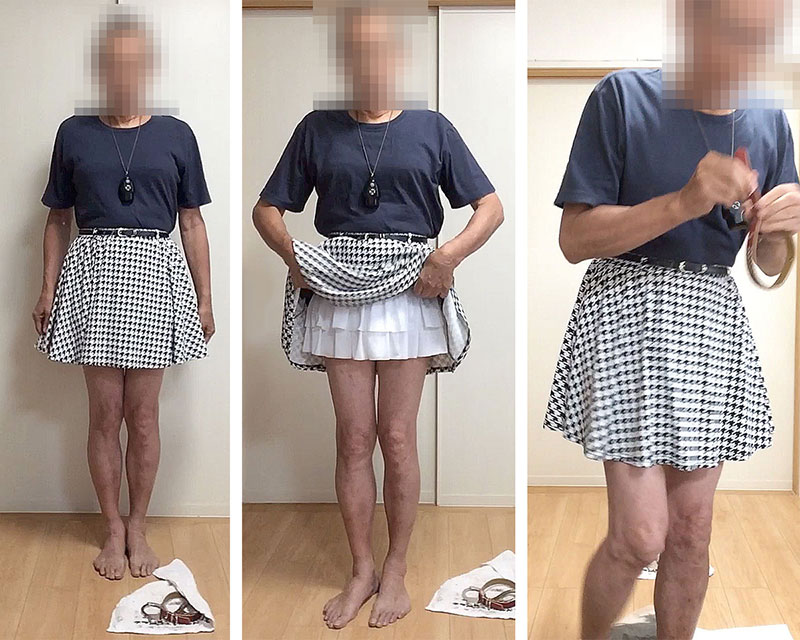 妻は何を思っているのか...彼女が僕のウシロを犯している淫具のスイッチを再度入れながら、恐ろしい言葉を吐き出している間に、僕はとりあえずメイド服を脱ぎました。その時、ランジェリー姿になった僕を見て妻がいいました。「ランジェリーはそのままで、ストッキングは脱いで!」...彼女の意向なのか、それともあらかじめ一ノ瀬に言い含められていたのか...僕に逆らう権利はありません。そんな僕に妻が渡したのが下の服装でした。この時、淫具の振動が止まりました。僕に着替えを促すように...このスカートがどこから出てきたのか分からないうちに、僕はすっかり変身してしまったのです。これから僕がかけられることになっている凄惨なリンチに相応しい生脚+フレアミニスカート姿...