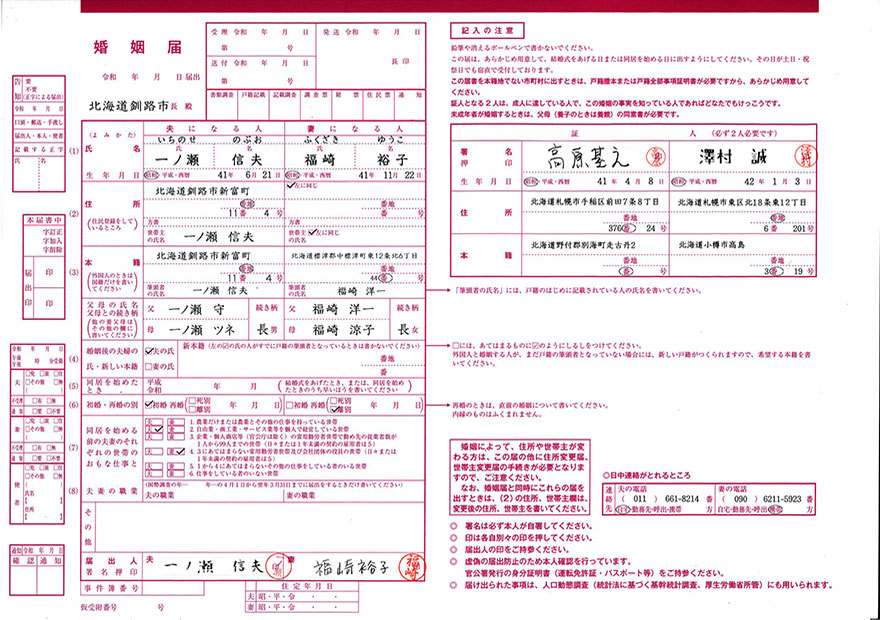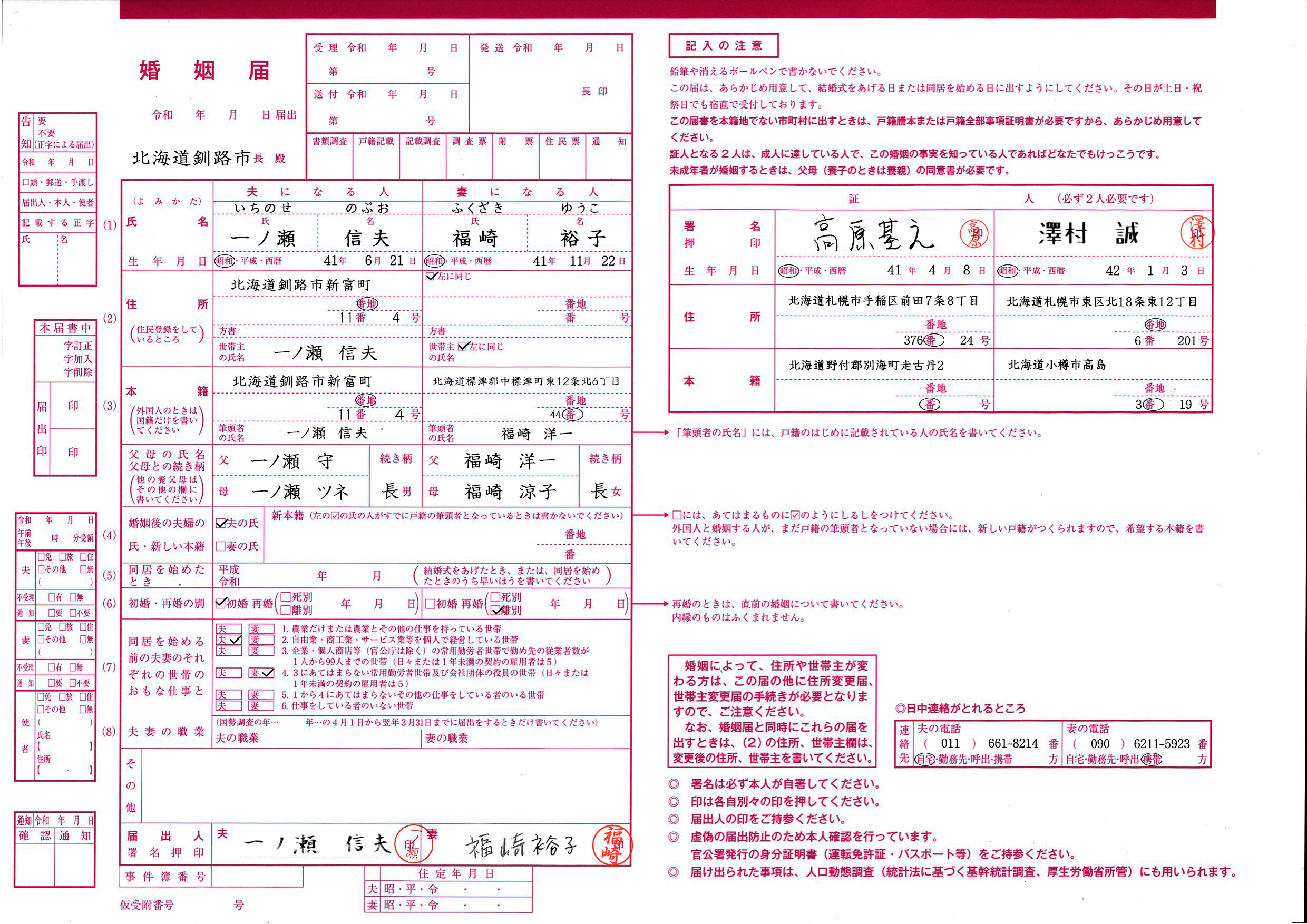 20○○年○月○日 新郎 澤村誠、新婦 高原基之
