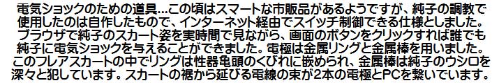 後ろを向いて手を椅子につき、カメラに向かってお尻を突き出すように命令された純子...スカートの中が見えてしまう...と、電気鞭が入れられて...ウウウッ!...