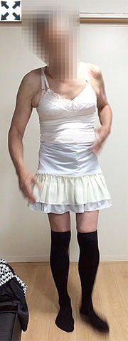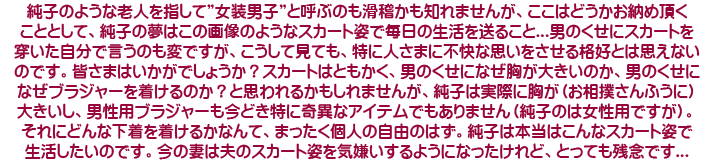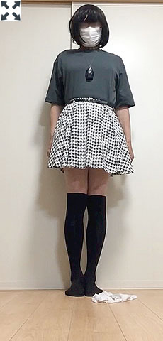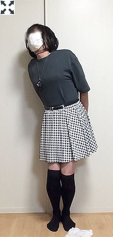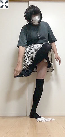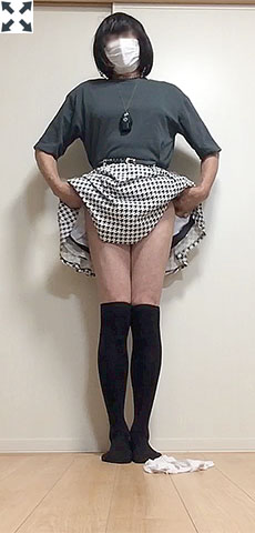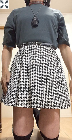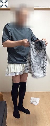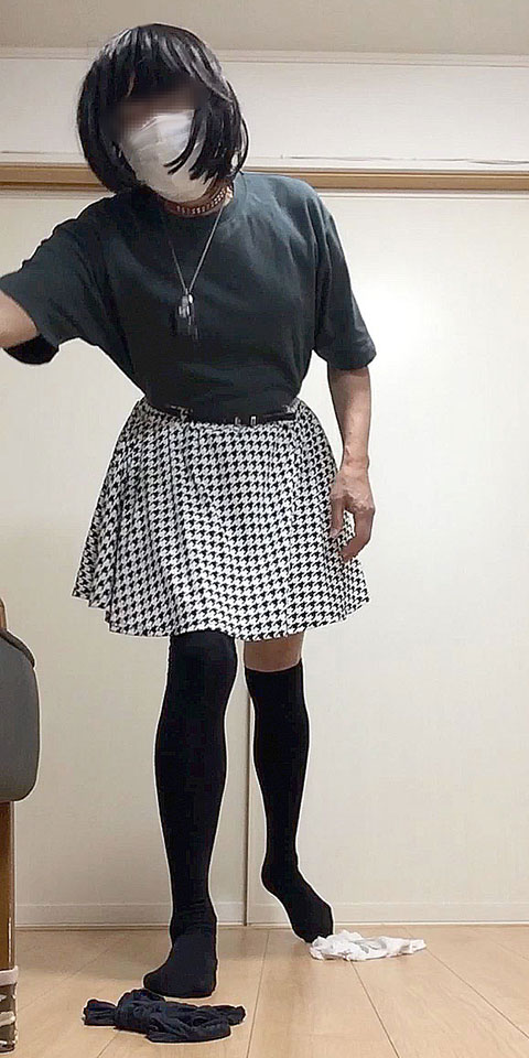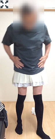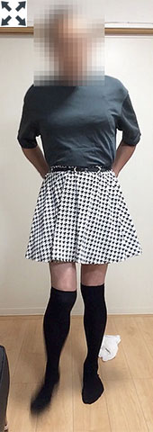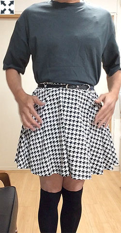 妻の前での女装生活では、上半身はいつもと変わらず下半身だけスカートを穿きました。
