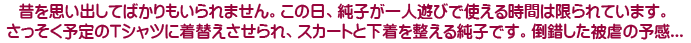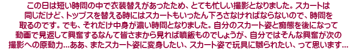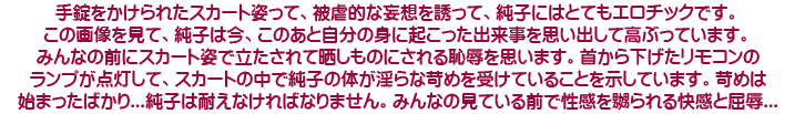 ブラジャーとキャミソールを着けています。さらにスカートの奥には特別のパンティと股縄が...